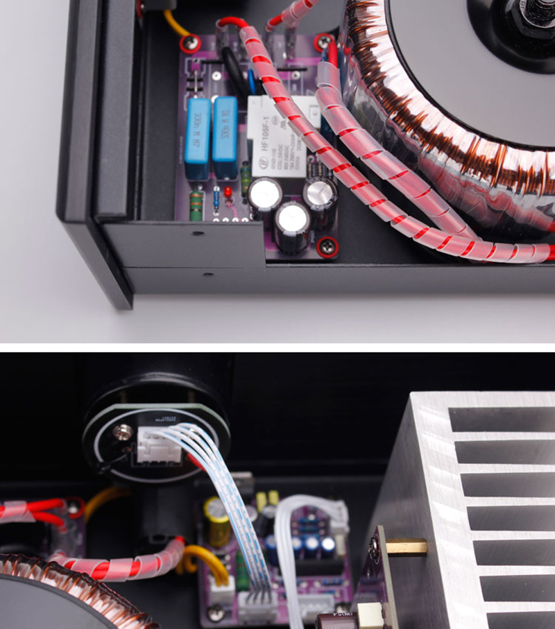 - The appearance is simple and pure, beautiful and generous. The panel is made of 10mm thick aluminum alloy with fine wire drawing process. The back signal input design features a single RCA and XLR input port for easy connection of front-end devices and various audio source devices.