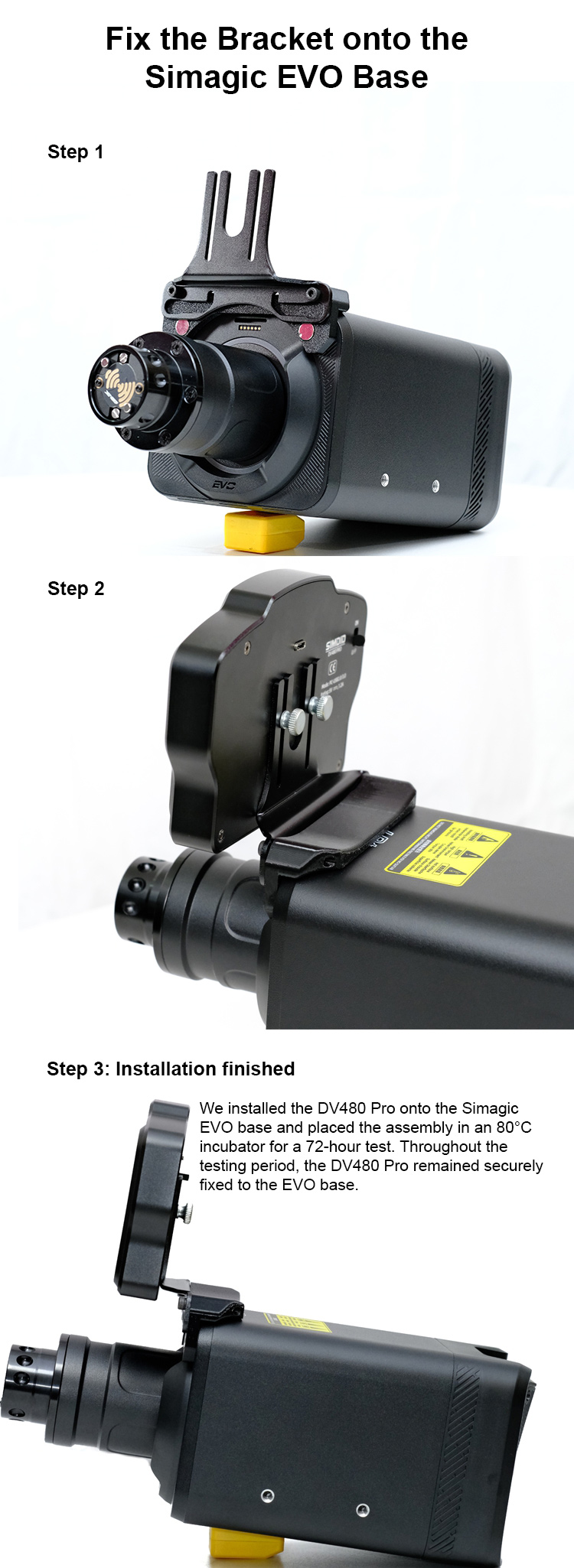 * We have developed dedicated adapter plates for the MOZA R3/R5/R9 and SIMAGIC EVO, ensuring full compatibility with the DV480 Pro.