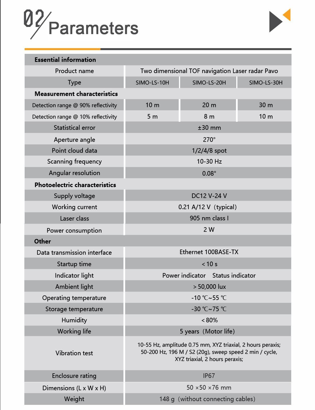 SIMINICS PAVO 20M/65.6FT Lidar Sensor Lidar Scanner Outdoor Waterproof TOF Radar Module SIMO-LS-20H