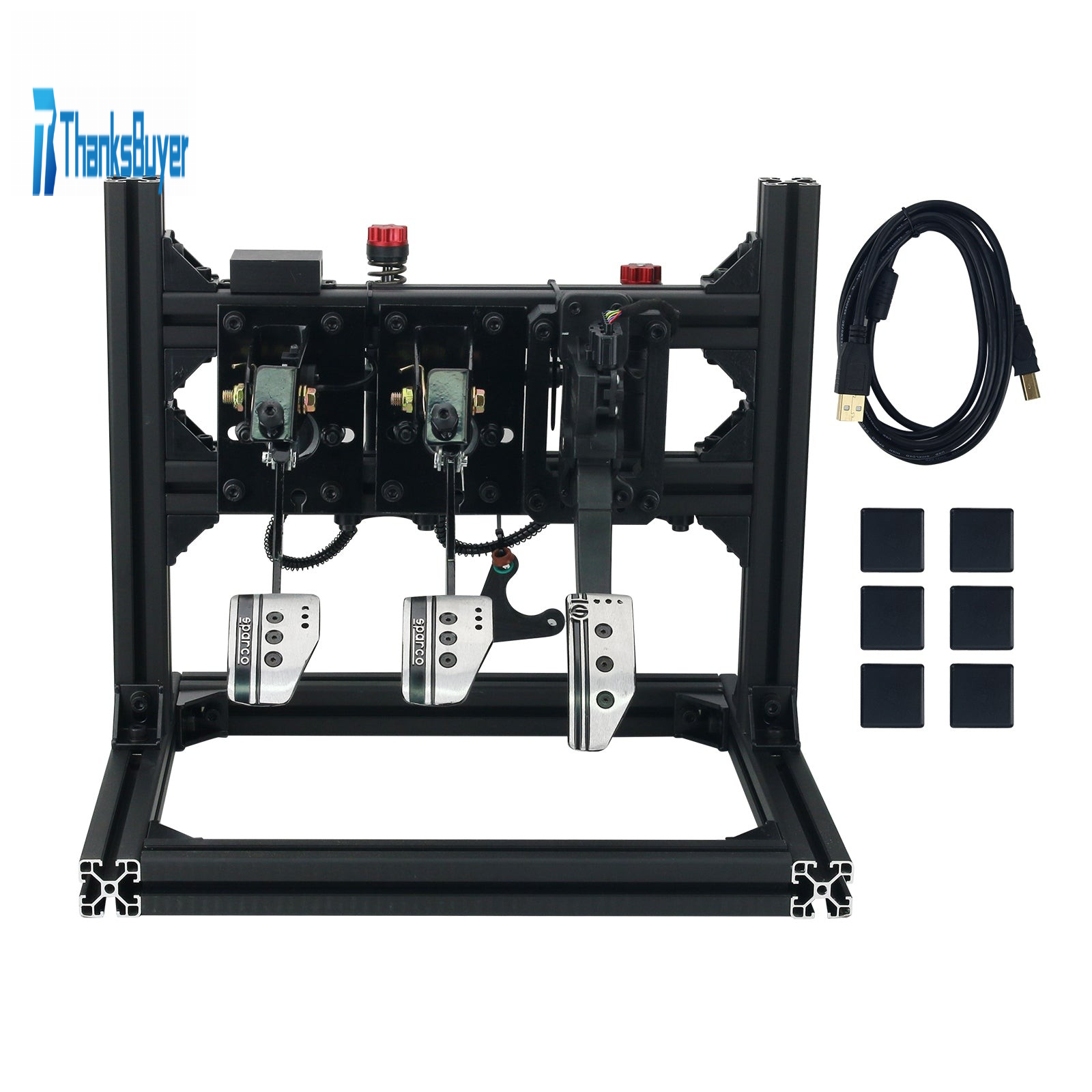 Hydraulic pedal simulator provides a hyper-realistic private car foot feel. USB is plug-and-play. Clutch and brake are adjustable. Profile holder is included in the package. Profile colors are available in matte black and silver. The dimensions of profile holder is 48 x 40 x 44cm/18.9 x 15.7 x 17.3" (WxDxH).