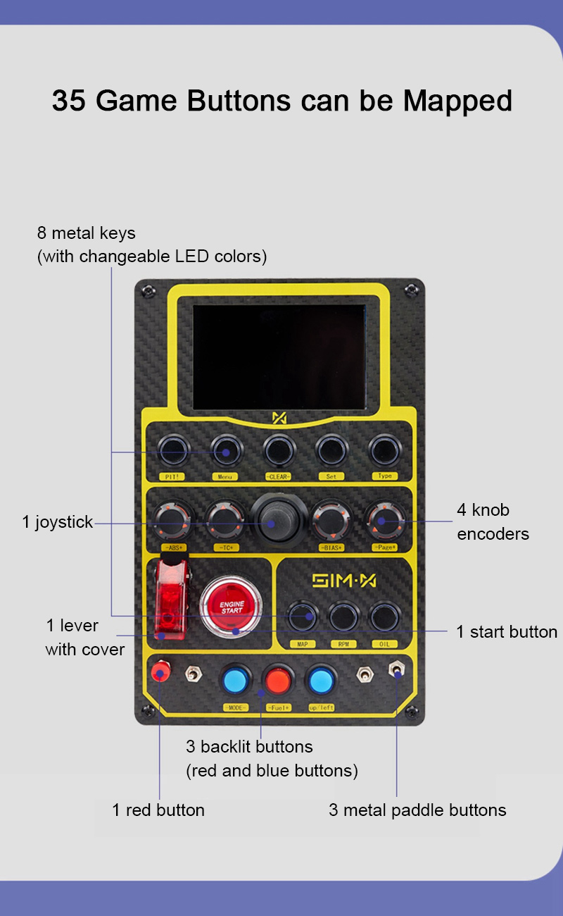 - HD IPS display: it can be used as a secondary screen. Used with SIMHUB software, it can display various instruments, and it can also be used as a simulated flight instrument display.
