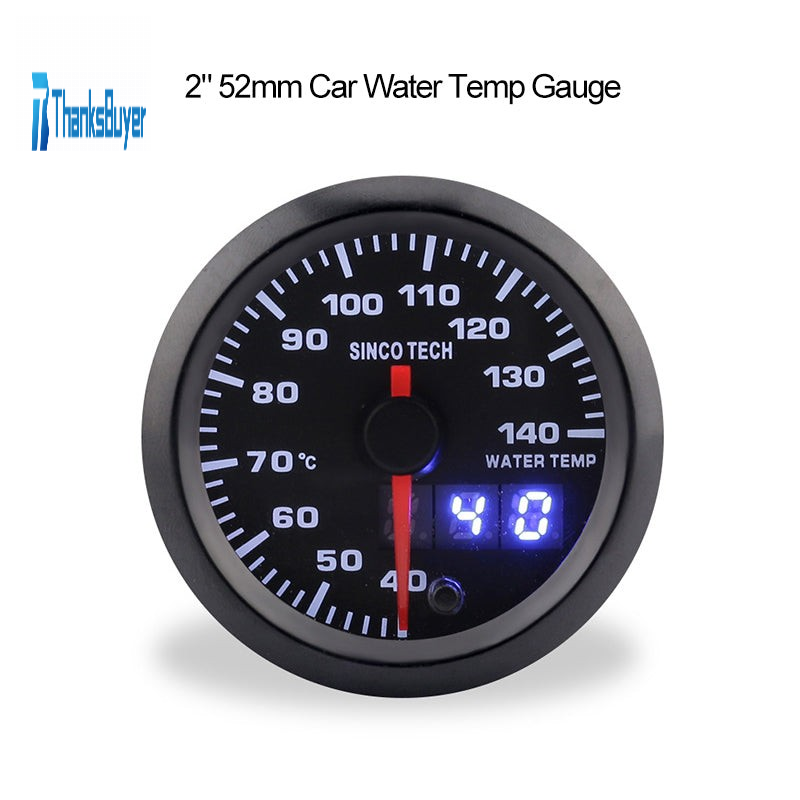 SINCOTECH 2" 52mm Car Water Temp Gauge Water Temperature Meter 40~140℃ 7-Color LED DO636 for 12V Car