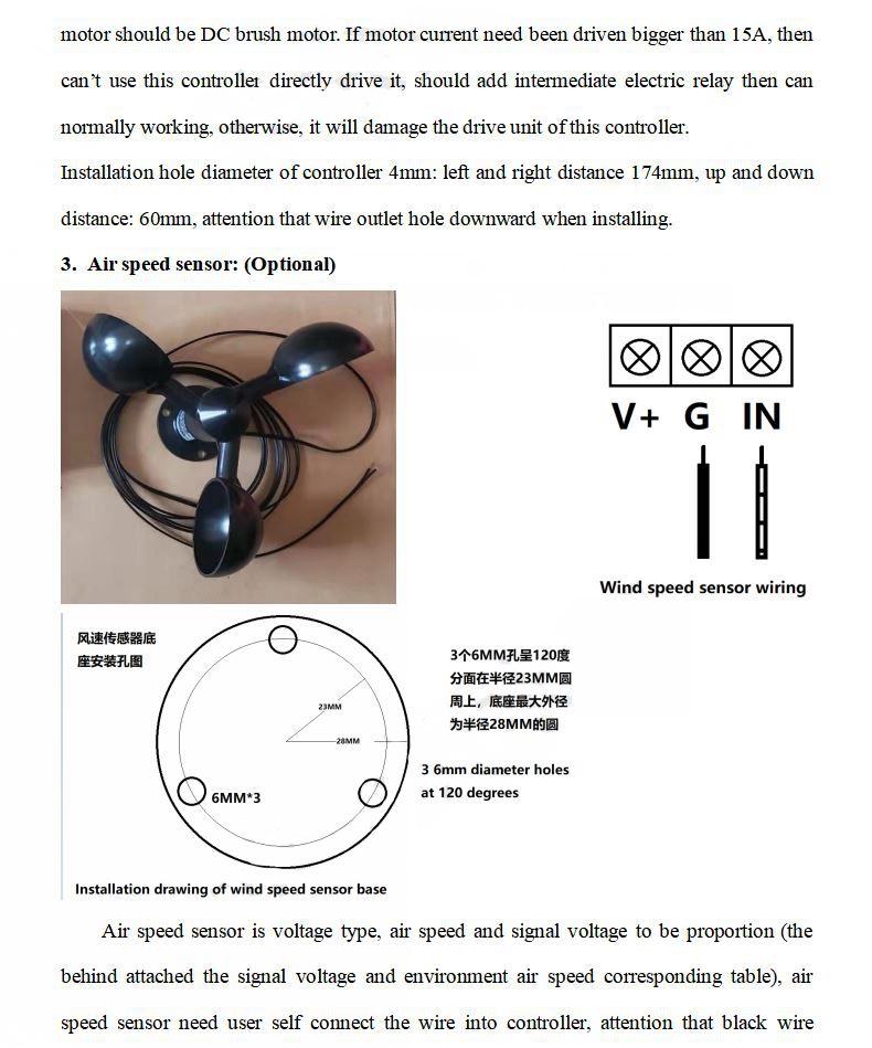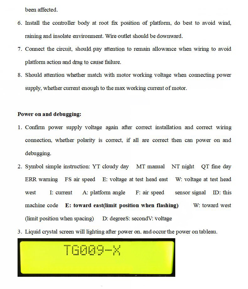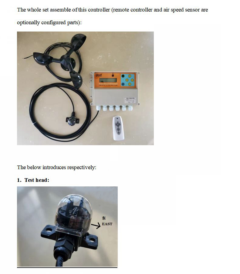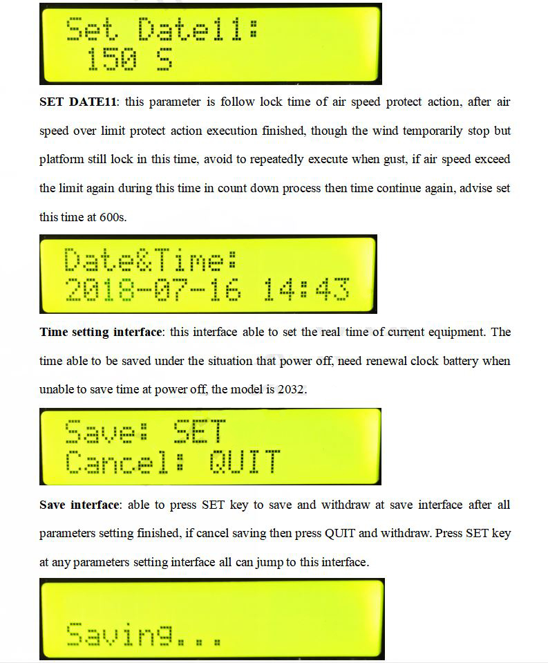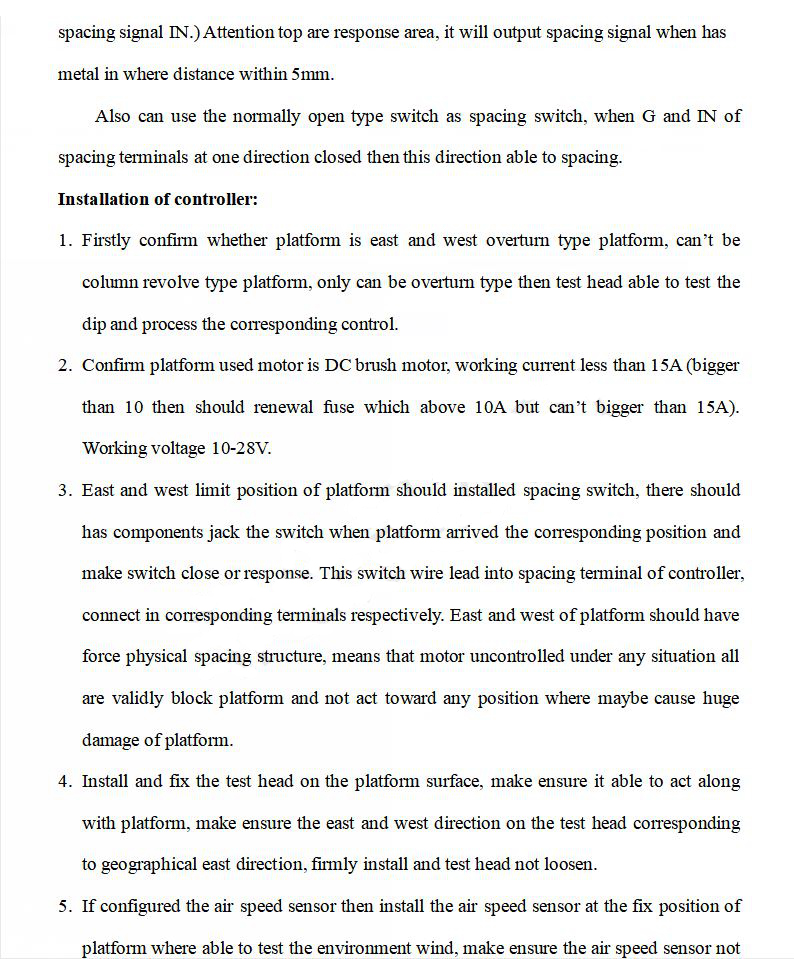 8. Optional wind speed sensor: It can control the platform to execute to a specified angle to avoid the wind to protect the platform when encountering strong winds.