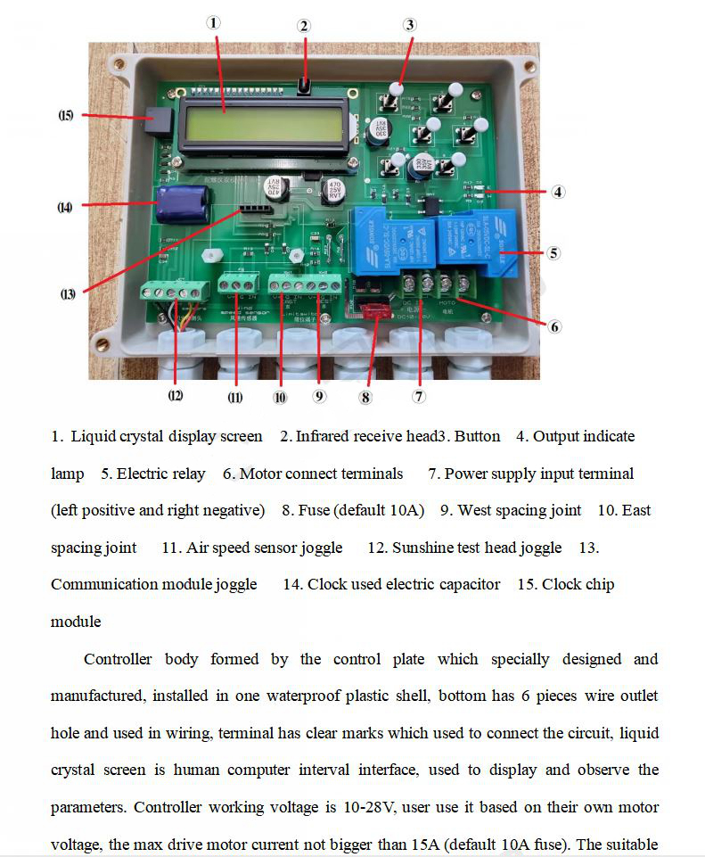5. High-current relay controls the forward rotation, reverse rotation and stop of your motor, and the maximum driving current is 15A. When the user chooses the motor, it is recommended to use the electric actuator with its own limit.