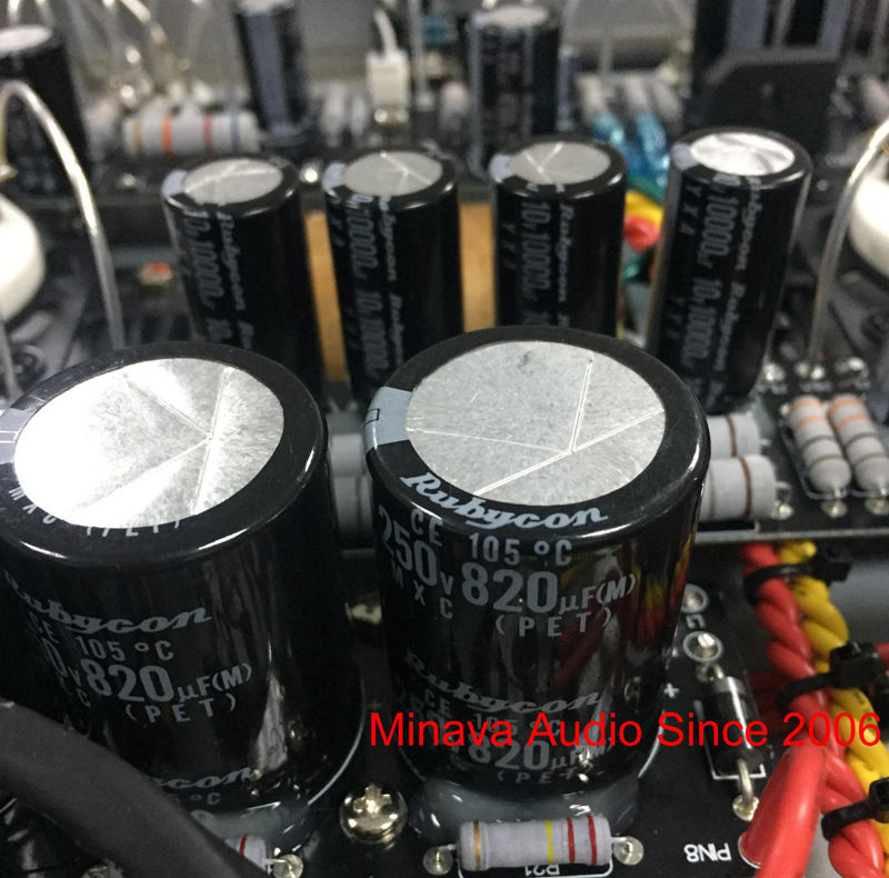 - Imported capacitors (large filter electrolytic capacitors) for RUBYCON; red large capacitors (for WIMA) for audio circuit