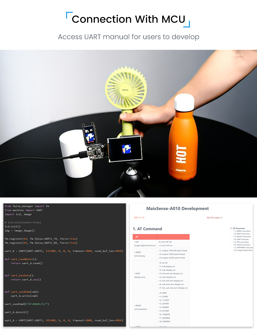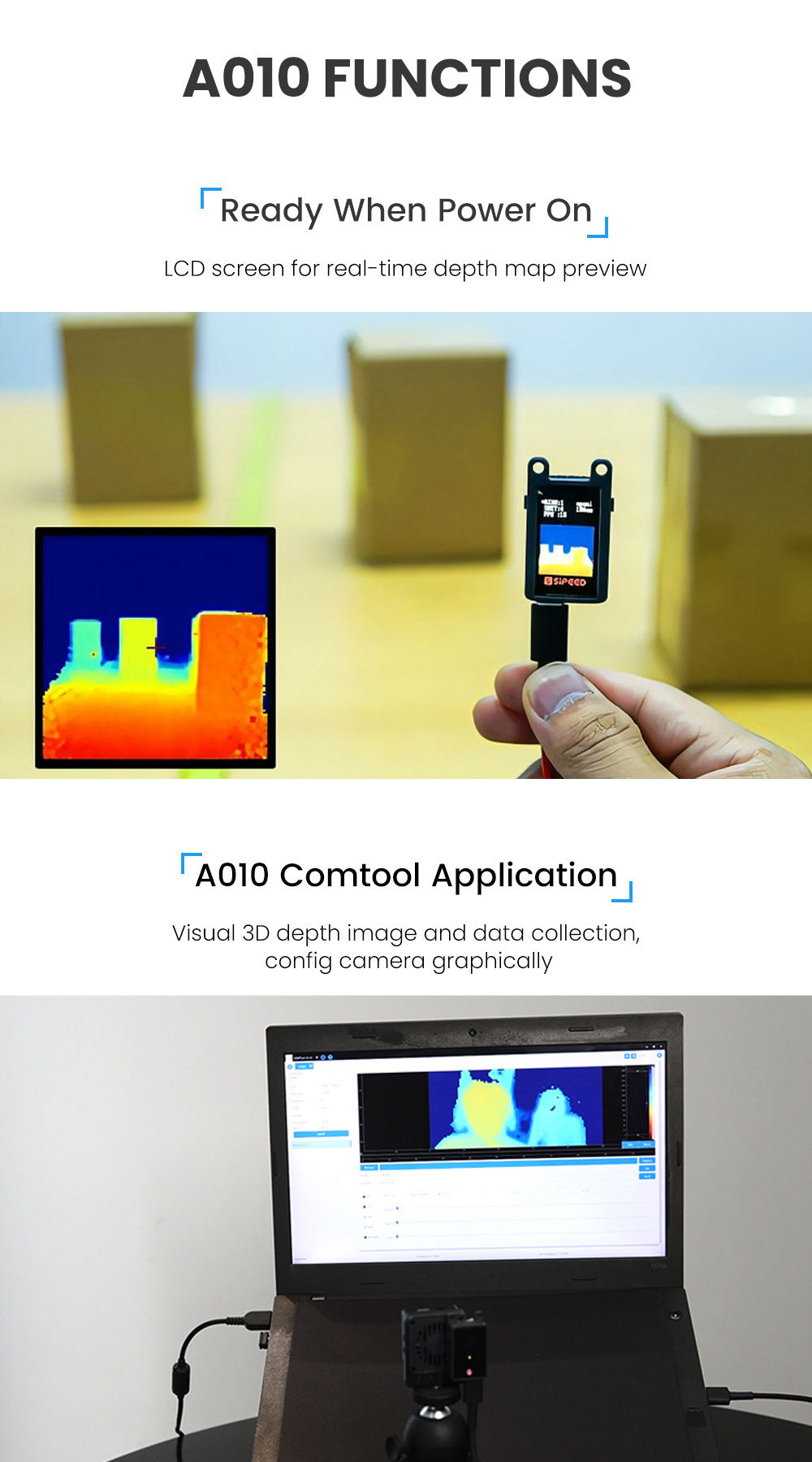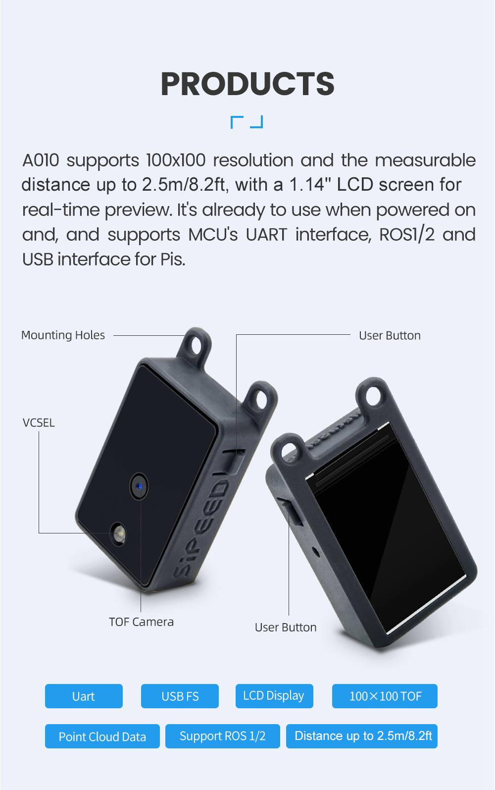 SiPEED 2.5M/8.2FT TOF 3D Depth Camera (MaixSense A010 with Screen) Suitable for MCU & ROS Robot