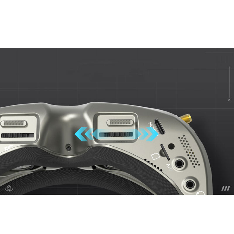 SKY04L is the LCOS version of SKY04 series products, binocular 5.8G wireless video glasses with 1280*960 high resolution LCOS display. The high-resolution display has bright colors and delicate display effects, allowing users to see more details in the flight experience. The fusion receiver for SteadyView that comes with the glasses combines the two video signals after processing, avoiding the screen tearing and flickering and rolling caused by the signal switching when the video transmission signal is weak in the traditional diversity receiver, making the image more vivid. More stable and clear in challenging environments. The newly designed optical part has a diopter adjustment function, and the 39° field of view brings a more immersive experience. The new UI system supports ten languages such as Chinese, with scroll wheels on both sides, avoiding cumbersome multiplexing of buttons, and the operation is simple and clear.