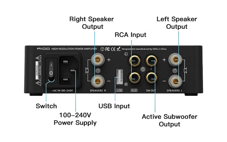 - Active bass 2.1 cinema system. Excellent bass. Active subwoofer can be connected. Your active subwoofer needs to have "Subwoofer in" or "LFE in" to connect to the A100's bass output. After connecting, the bass signal will be output from the main speaker and subwoofer at the same time, providing richer low frequency and pristine and detailed high frequency. The A100 has two subwoofer output ports with the same function, you can choose one of them to connect a subwoofer