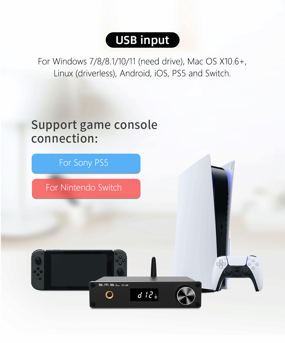 SMSL D12 768KHz 32Bit Bluetooth DAC USB DAC Audio Decoder AK4493S DSD512 for XMOS XU316 MQA