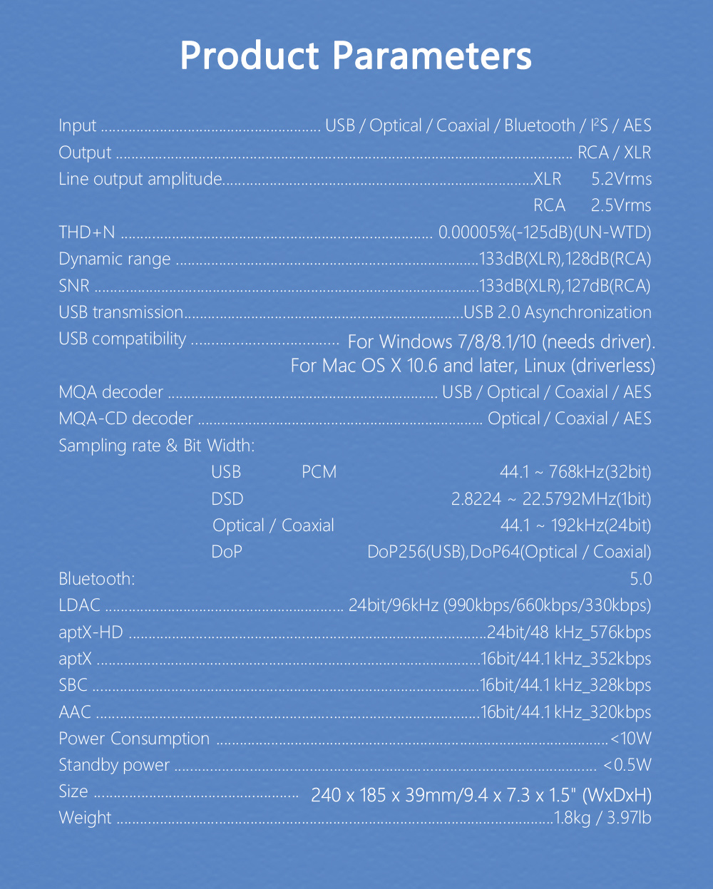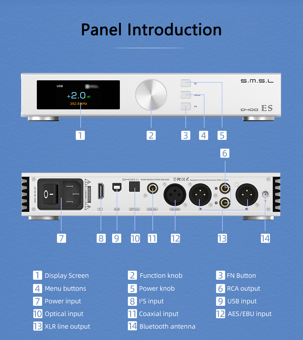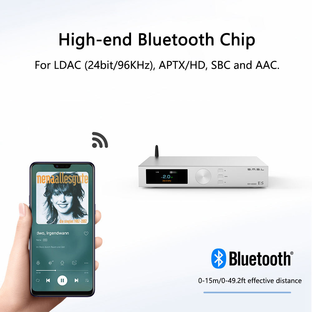 SMSL D400ES High Resolution USB DAC Bluetooth DAC Hifi Audio Decoder ES9039MPRO with Remote Control