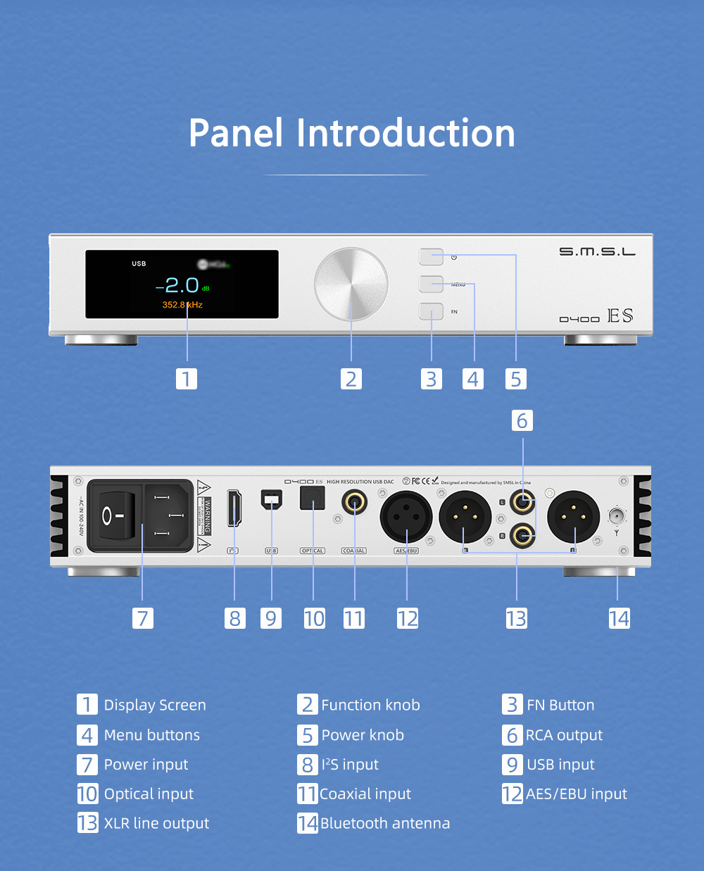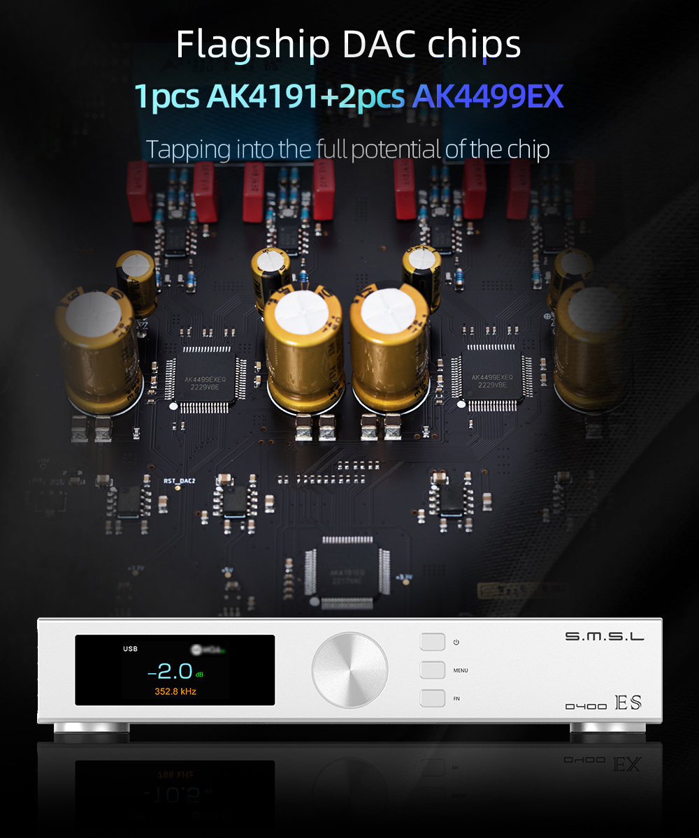 SMSL D400EX USB DAC Fully Balanced Hifi Audio Decoder Dual AK4499EX DSD512 with Remote Control