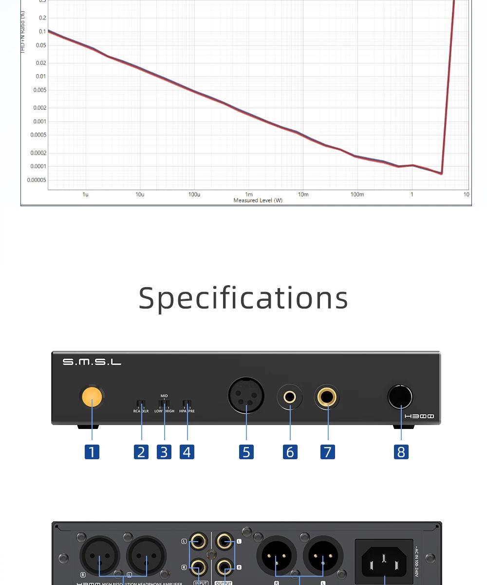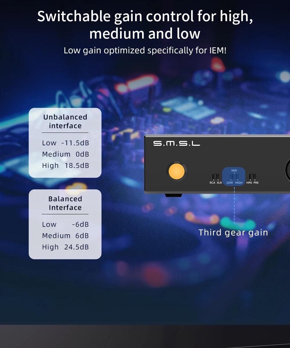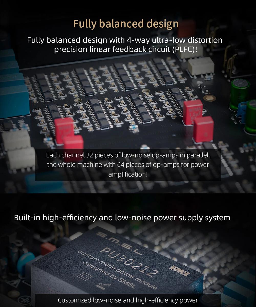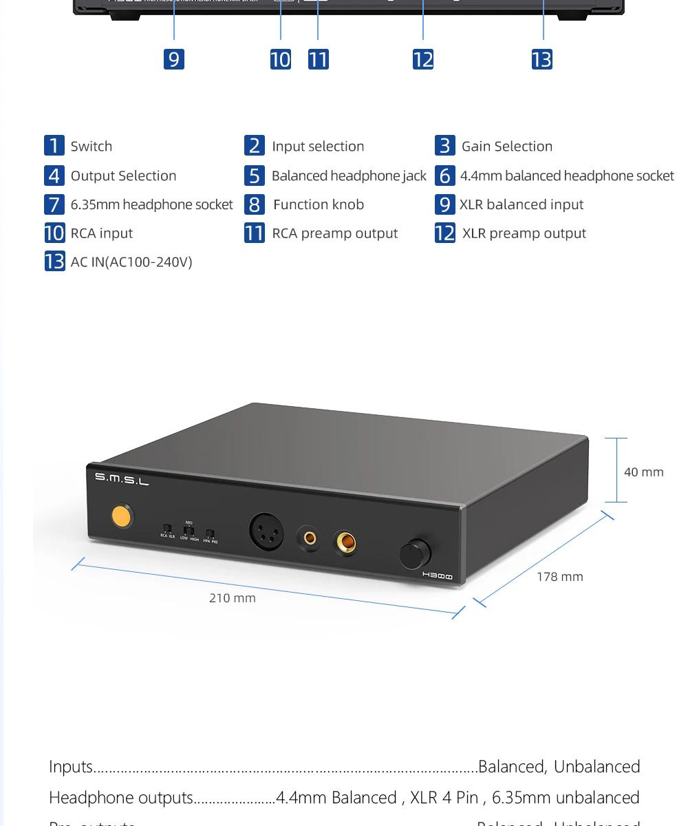 SMSL H300 Headphone Amplifier HiFi Fully Balanced Hi-Res Audio Amplifier 4-Channel Ultra-low Distortion PLFC