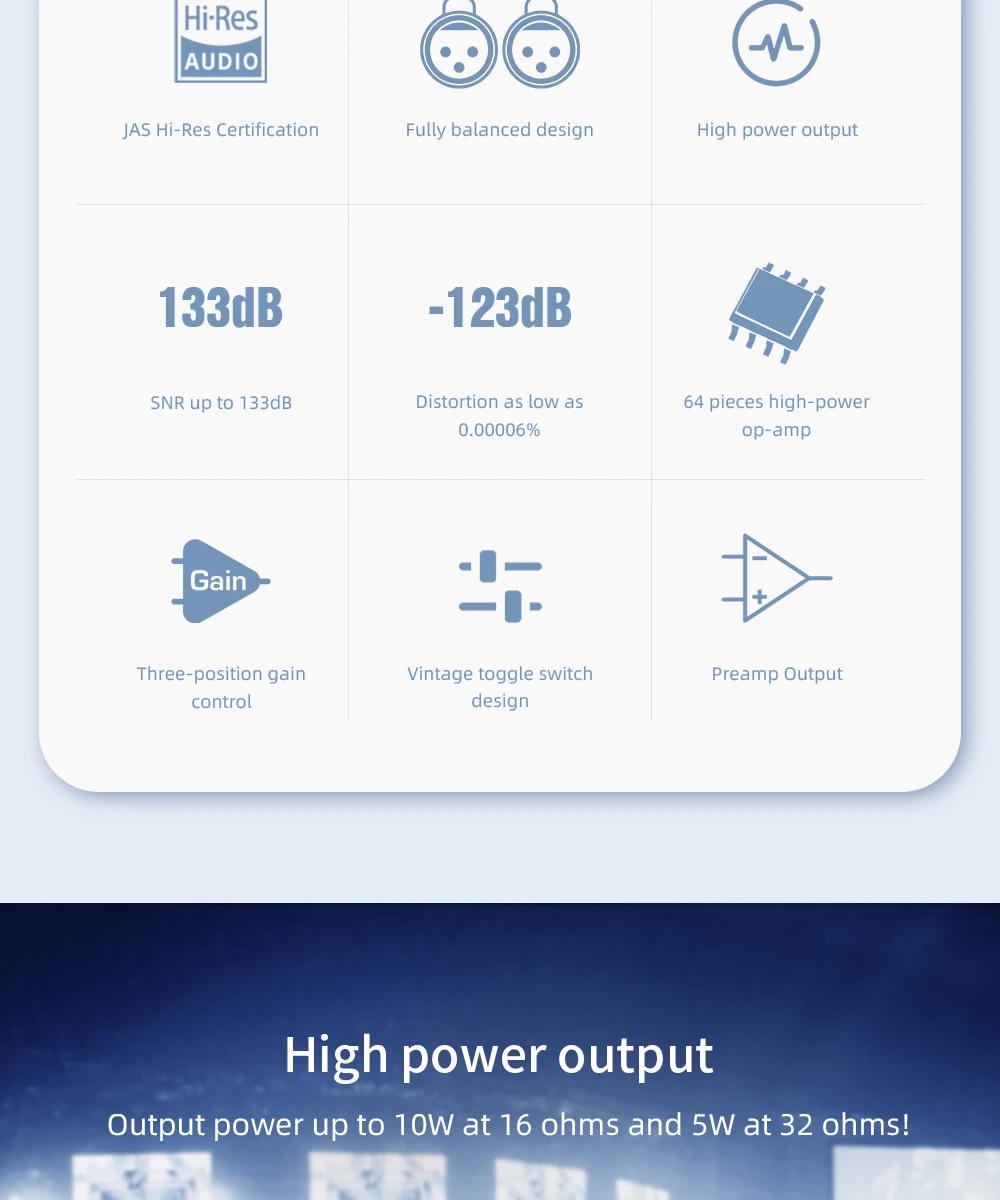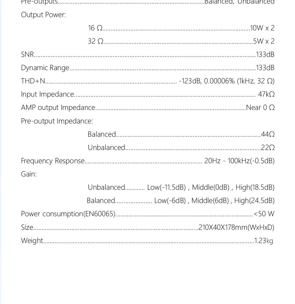 - Headphone outputs: 4.4mm Balanced, XLR 4 Pin, 6.35mm unbalanced