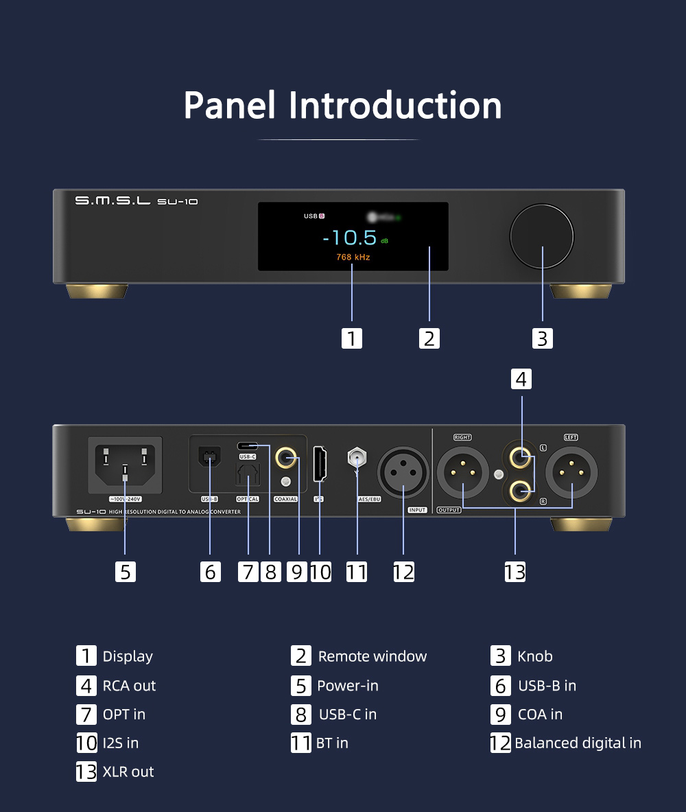 SMSL SU-10 Bluetooth DAC USB DAC DSD512 Audio Decoder Dual ES9038PRO XU316 with Remote Control