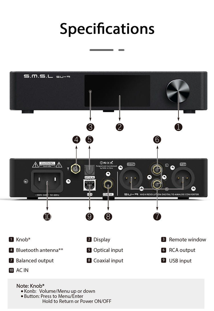 SMSL SU-9 Audio DAC Bluetooth 5.0 DAC Decoder For MQA LDAC DSD512 PCM 768KHz 32Bit ES9038PRO