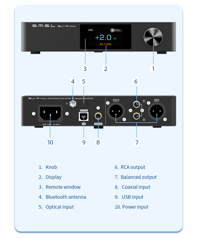 SMSL SU-9 PRO ES9039MPRO USB DAC Bluetooth DAC High Resolution Digital to Analog Converter for MQA