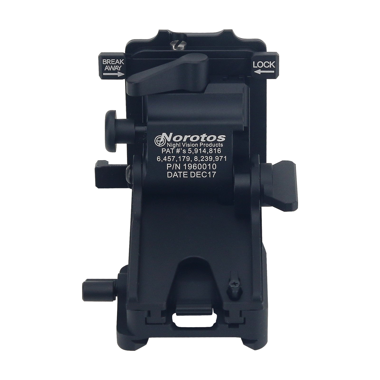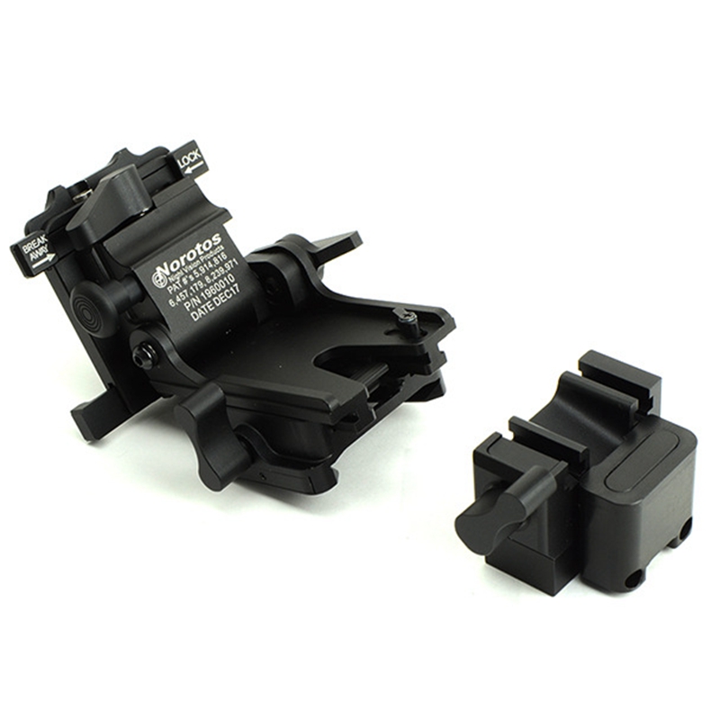 - It also features a breakaway system for use during high-intensity activities where a night vision goggle could impact an outside surface and become damaged. A shuttle switch allows the user to set the mount to either locked or breakaway mode. When locked, the mount will not will come loose from the shroud without pushing the release button. In breakaway mode, the mount will release from the shroud under a user-specified amount of force. This is extremely useful during activities where the NVG and mount can become snagged on other gear or surfaces. Smacking a stowed NVG on a surface during activities such as fast rope and vehicle dismount can snap the user’s head back and severely injure his/her neck. It can also cause damage to the mounted NVG.  But, if the mount has a breakaway system like the Hyper Series, it will pop loose from the shroud. Assuming the goggle is dummy-corded to the helmet, the user will have retain it while saving his neck. The Hyper Series Break-Away mode is user-adjustable. A top-mounted set screw allows operators to determine how many foot/pounds pressure are required to pop the mount loose.