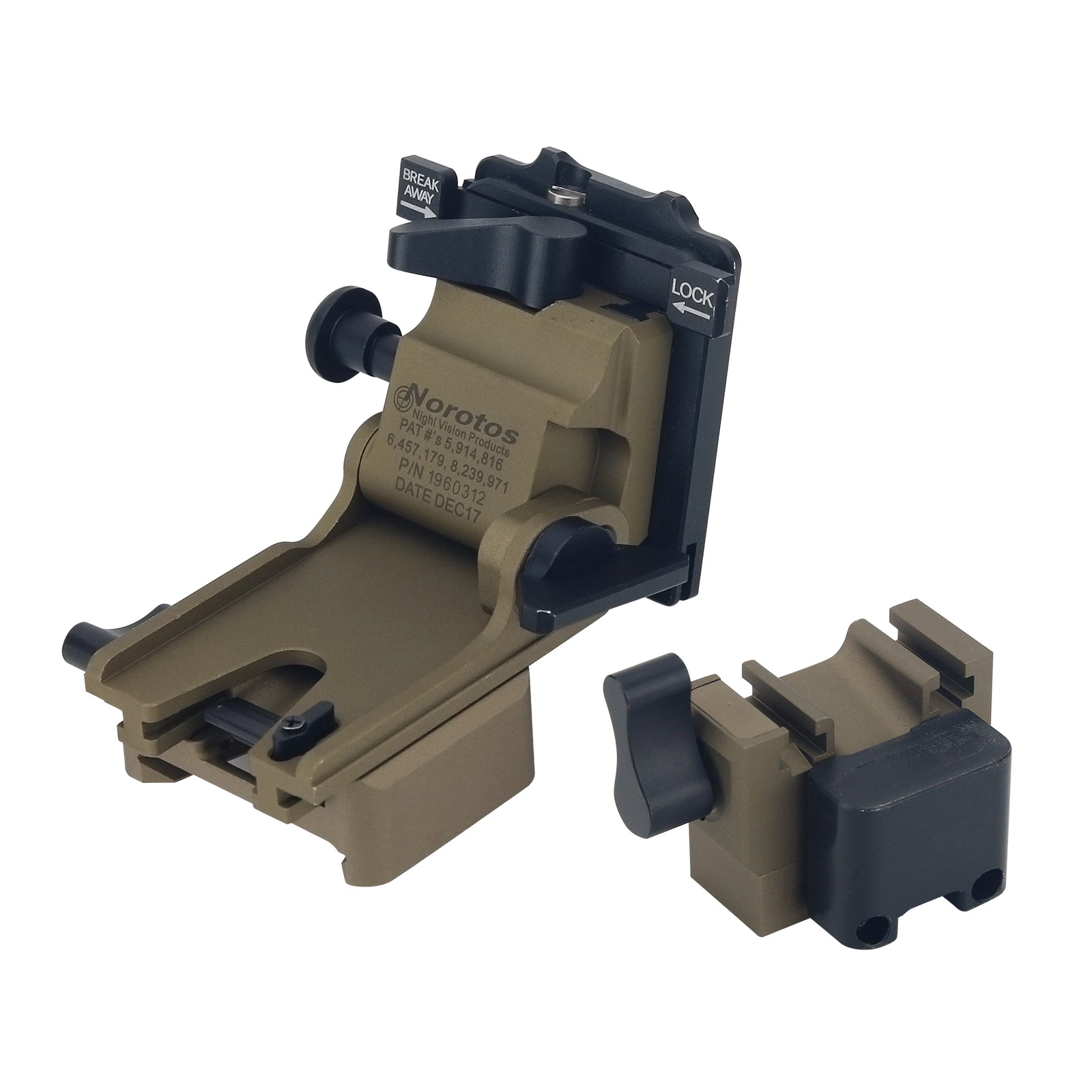 - It also features a breakaway system for use during high-intensity activities where a night vision goggle could impact an outside surface and become damaged. A shuttle switch allows the user to set the mount to either locked or breakaway mode. When locked, the mount will not will come loose from the shroud without pushing the release button. In breakaway mode, the mount will release from the shroud under a user-specified amount of force. This is extremely useful during activities where the NVG and mount can become snagged on other gear or surfaces. Smacking a stowed NVG on a surface during activities such as fast rope and vehicle dismount can snap the user’s head back and severely injure his/her neck. It can also cause damage to the mounted NVG.  But, if the mount has a breakaway system like the Hyper Series, it will pop loose from the shroud. Assuming the goggle is dummy-corded to the helmet, the user will have retain it while saving his neck. The Hyper Series Break-Away mode is user-adjustable. A top-mounted set screw allows operators to determine how many foot/pounds pressure are required to pop the mount loose.