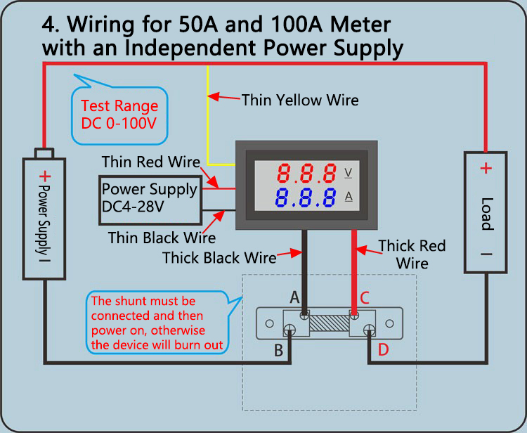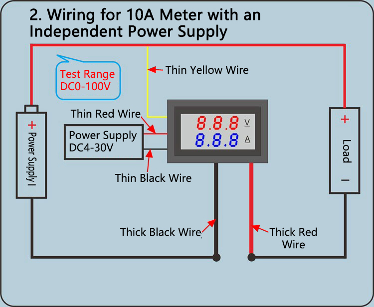 - Two testing modes, CV and CC (red light is on for CV mode and green light on for CC mode). Long press the button on the board to switch between these two modes