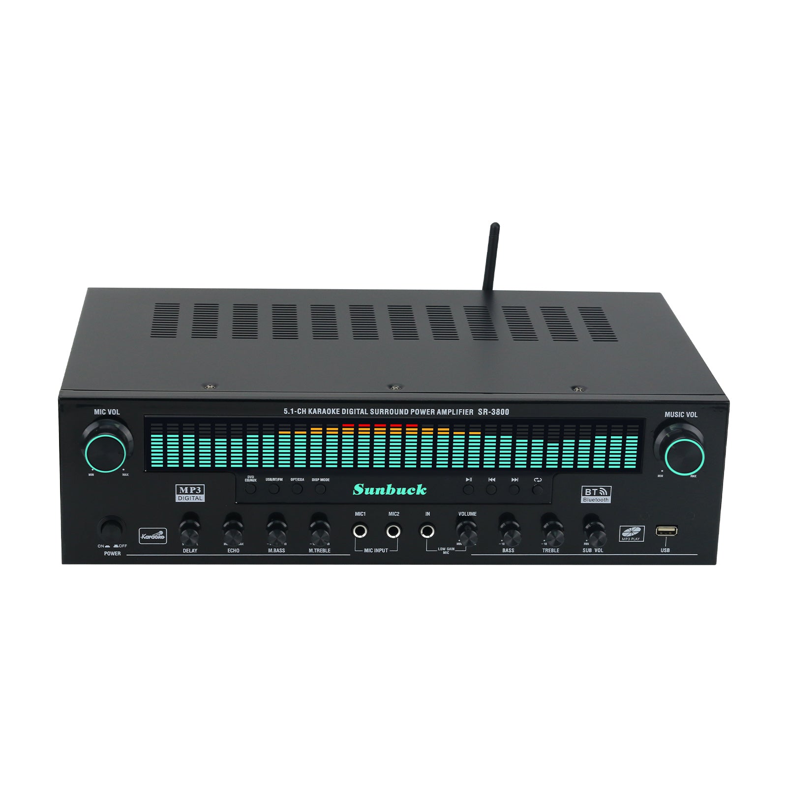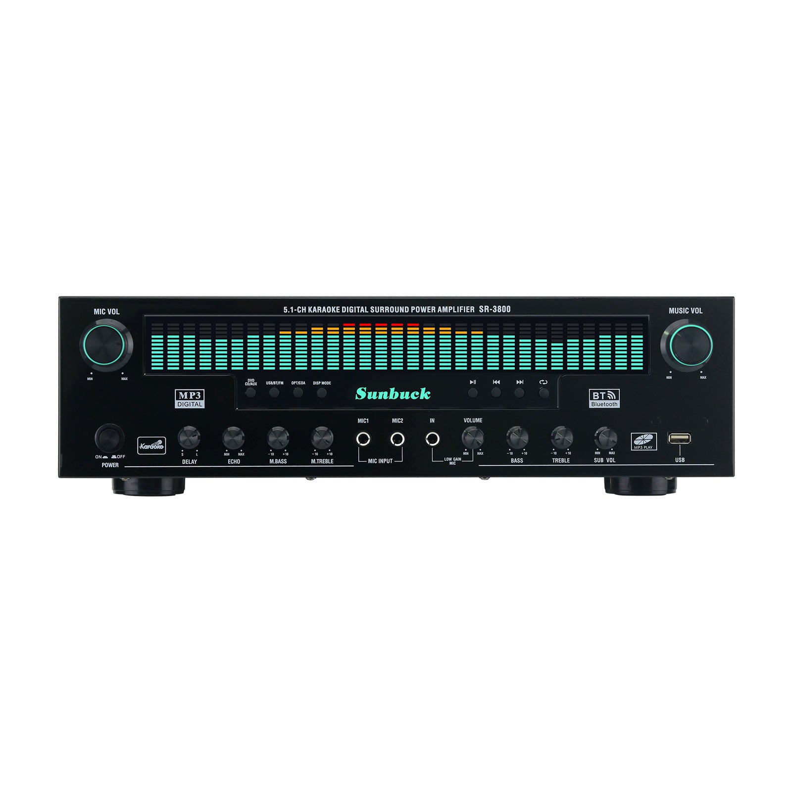 SR-3800 1000W 220V Bluetooth Amplifier 5.1CH Karaoke Digital Surround Power Amplifier (Green Screen)