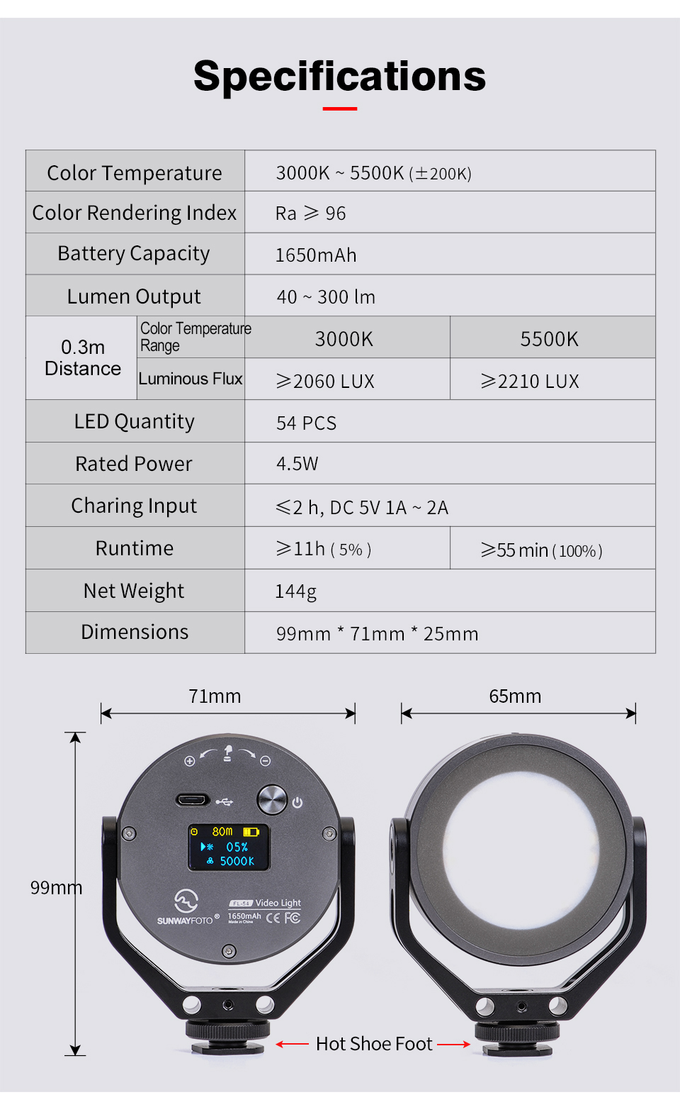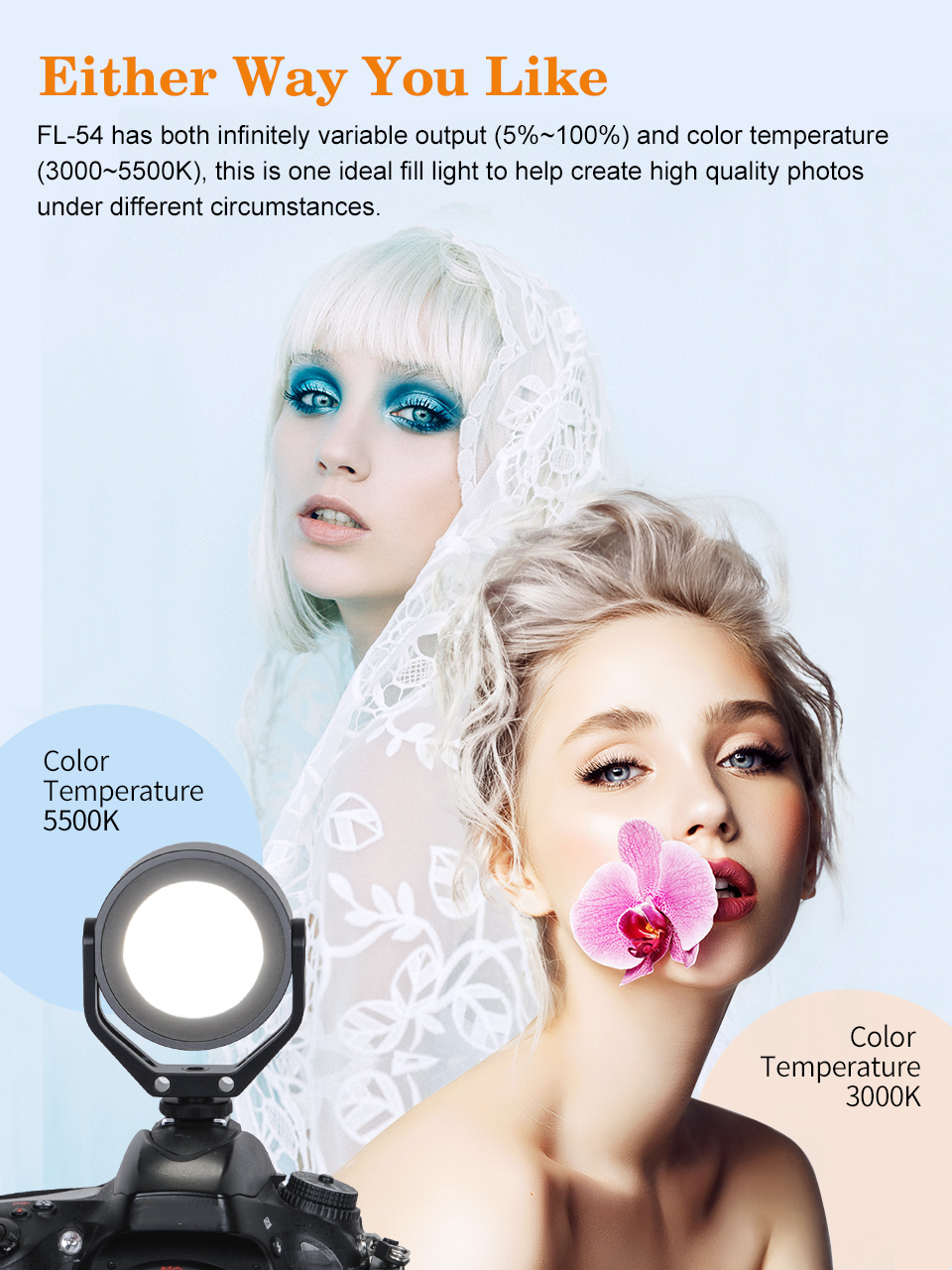 SUNWAYFOTO FL-54 LED Fill Light Camera Video Studio Light for Photography Lighting Outdoor Camping