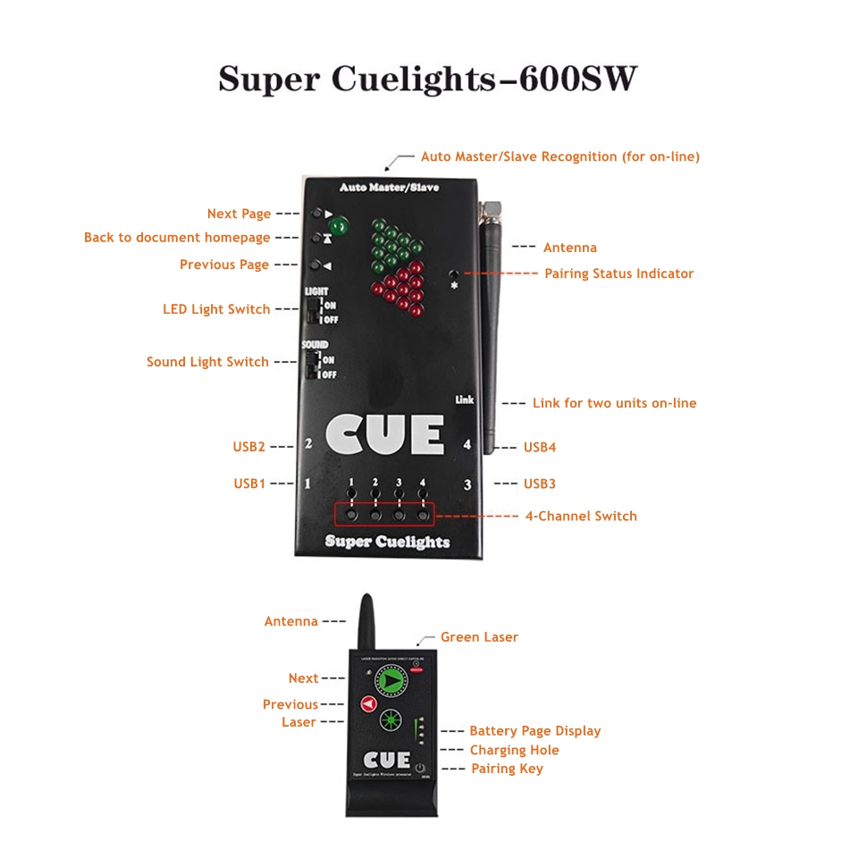 Super Cuelights-600SW Presenter Remote 1 Receiver and 2 Transmitters with 4-Channel Switch Control for PowerPoint Presentation