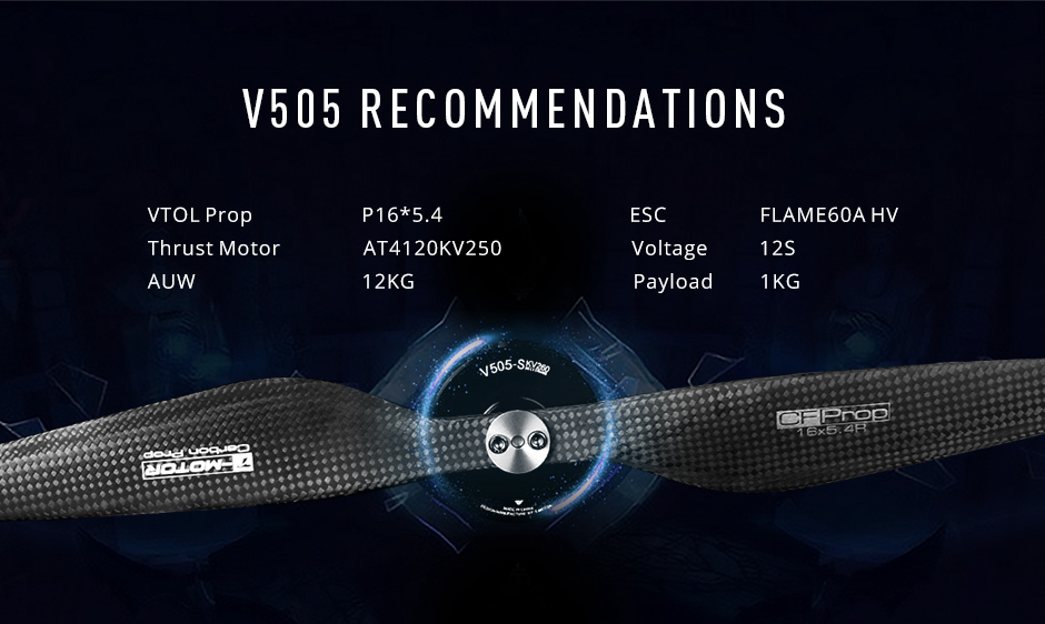 T-Motor UAV Motor Brushless Motor For VTOL Drone Playload 1KG 12S V505 260KV