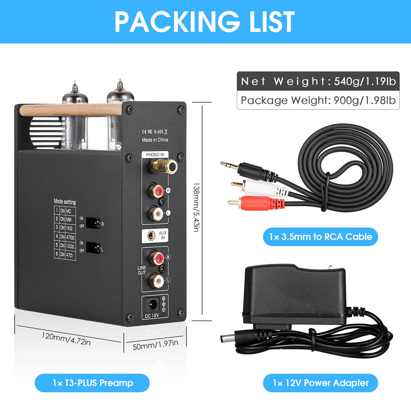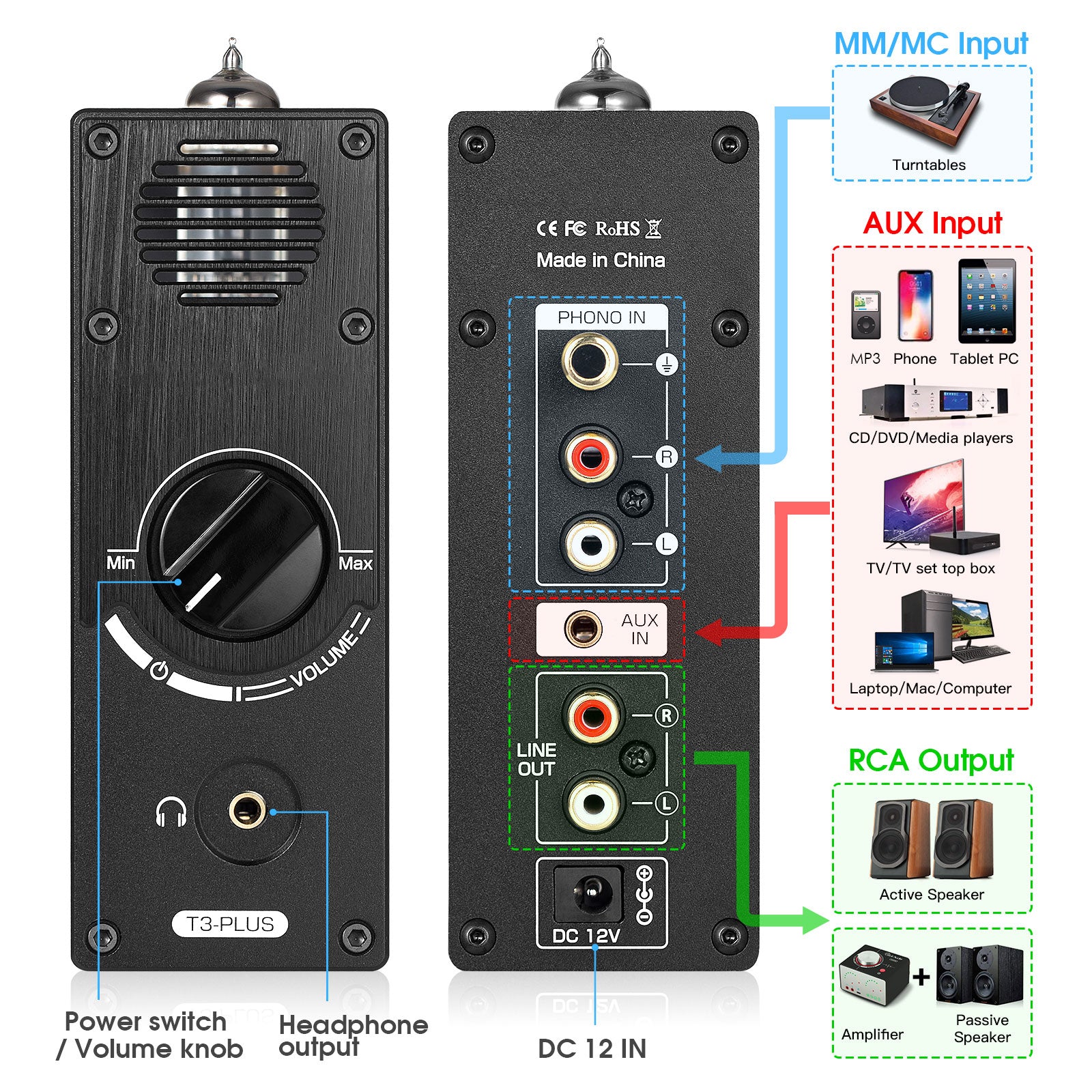 T3-PLUS MM MC Phonograph Preamp Phono Preamplifier Vacuum Tube Phono Preamp Headphone Amp