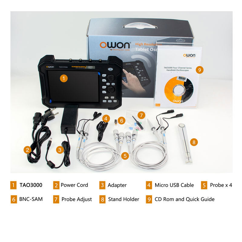 TAO3104 100MHz 4-Channel 8bits Handheld Tablet Digital Oscilloscope with 8-inch Multi-point Touch Screen