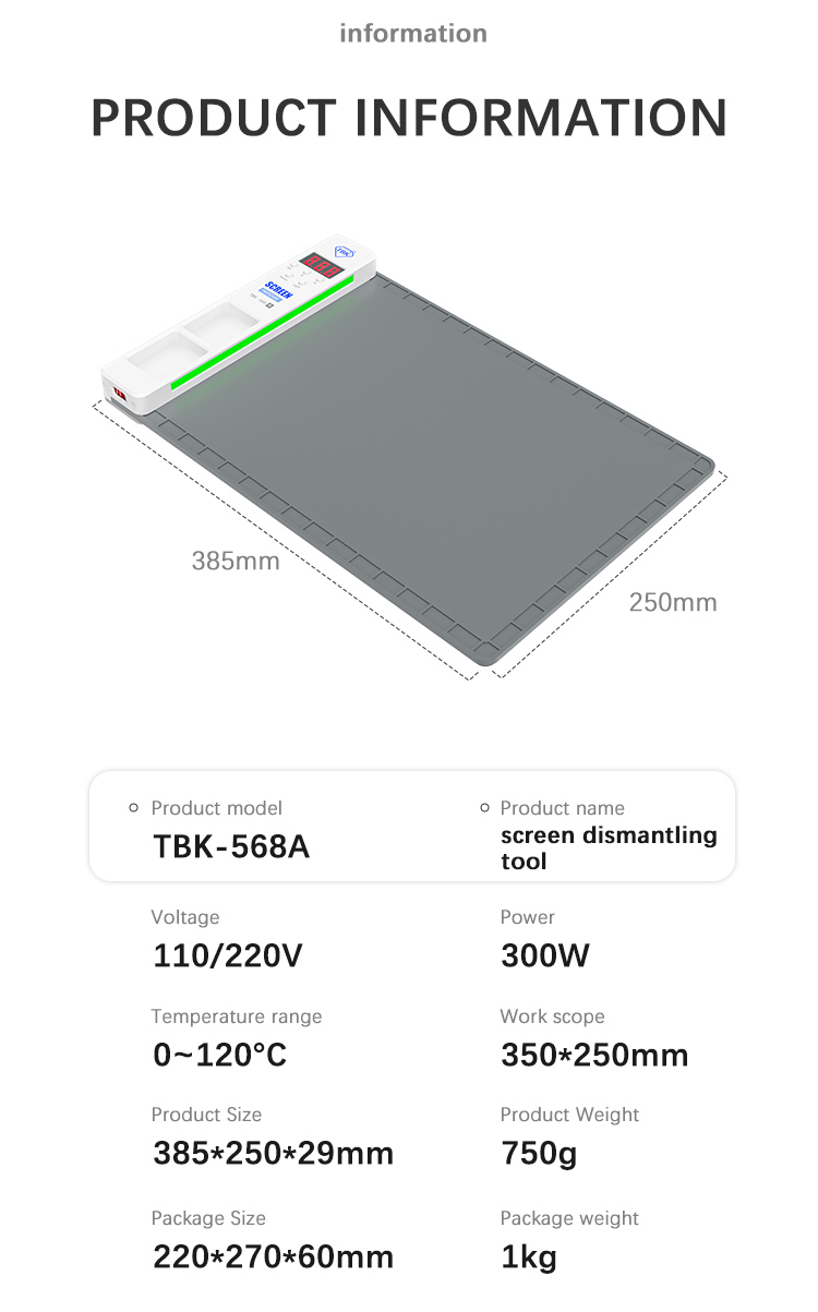 TBK-568A 16-inch Silicone Multifunctional Heating Pad 0-120℃ Super Fast Heating LCD Screen Removal Tool
