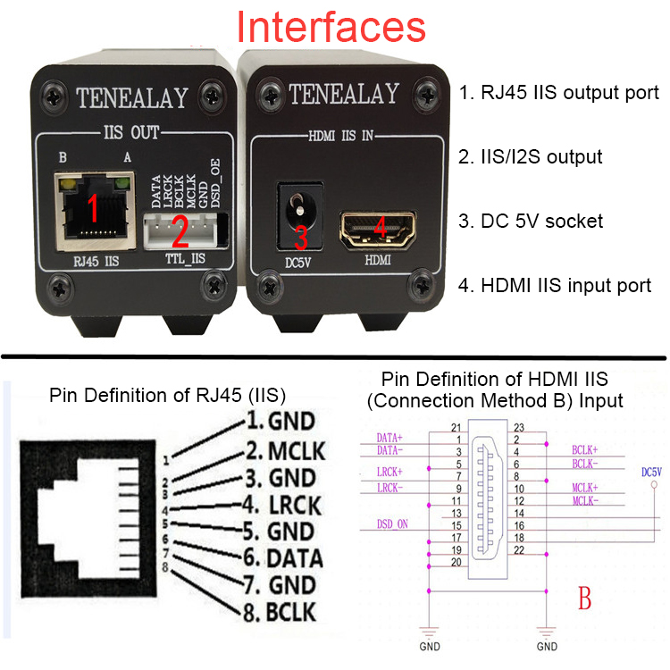 TENEALAY HDMI to RJ45 I2S Converter I2S Differential Signal to TTL Level for HIFI DAC
