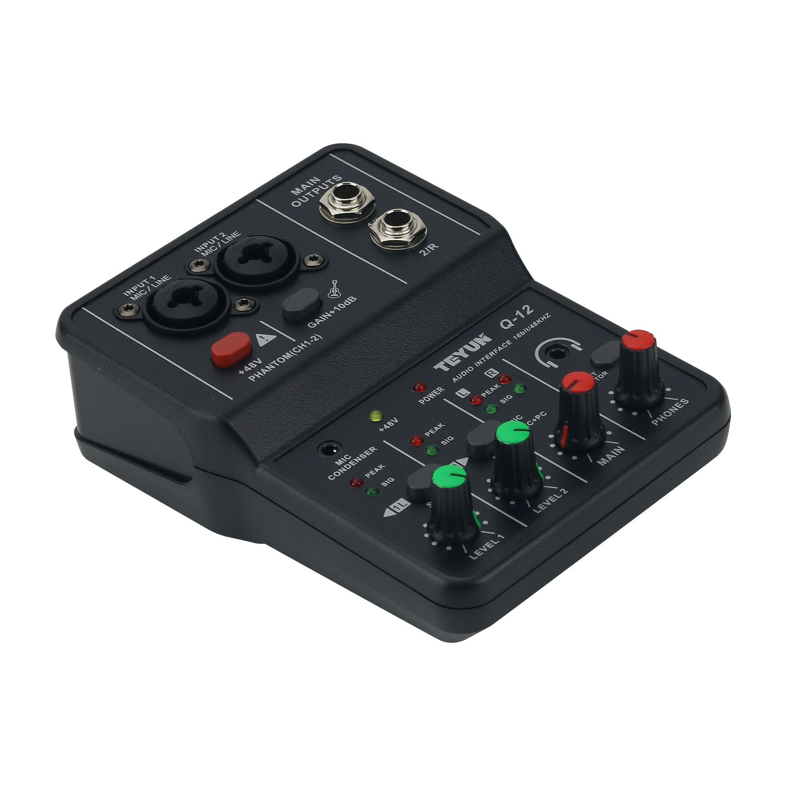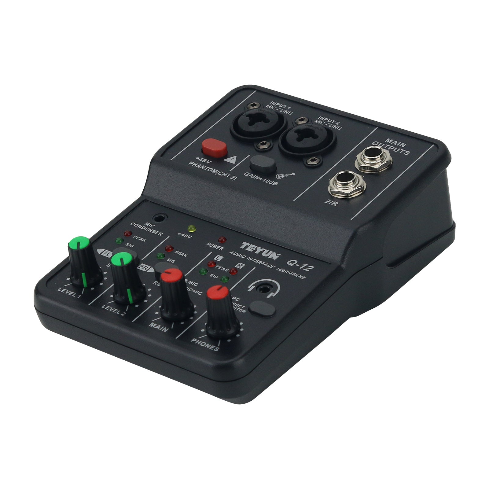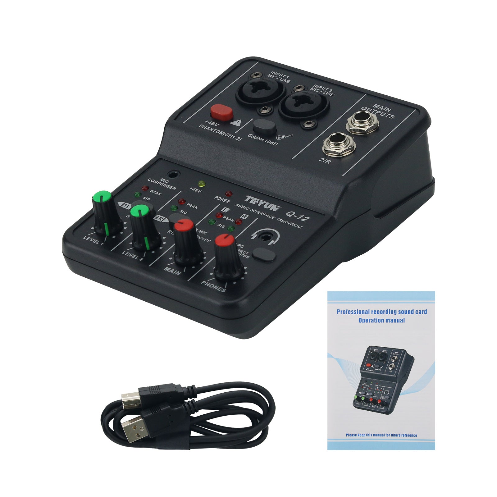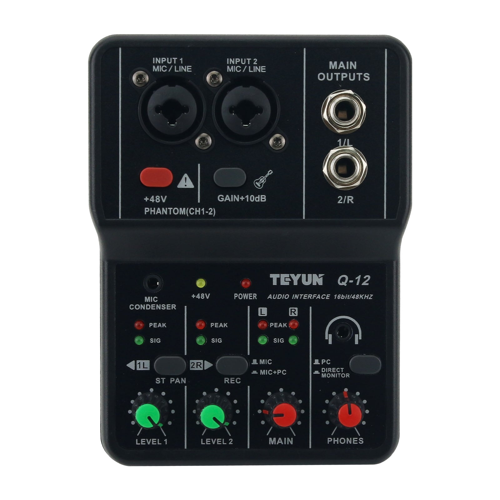 TEYUN Q-12 Professional Computer Recording Sound Card 16Bit 48KHz Audio Interface USB Drive-Free