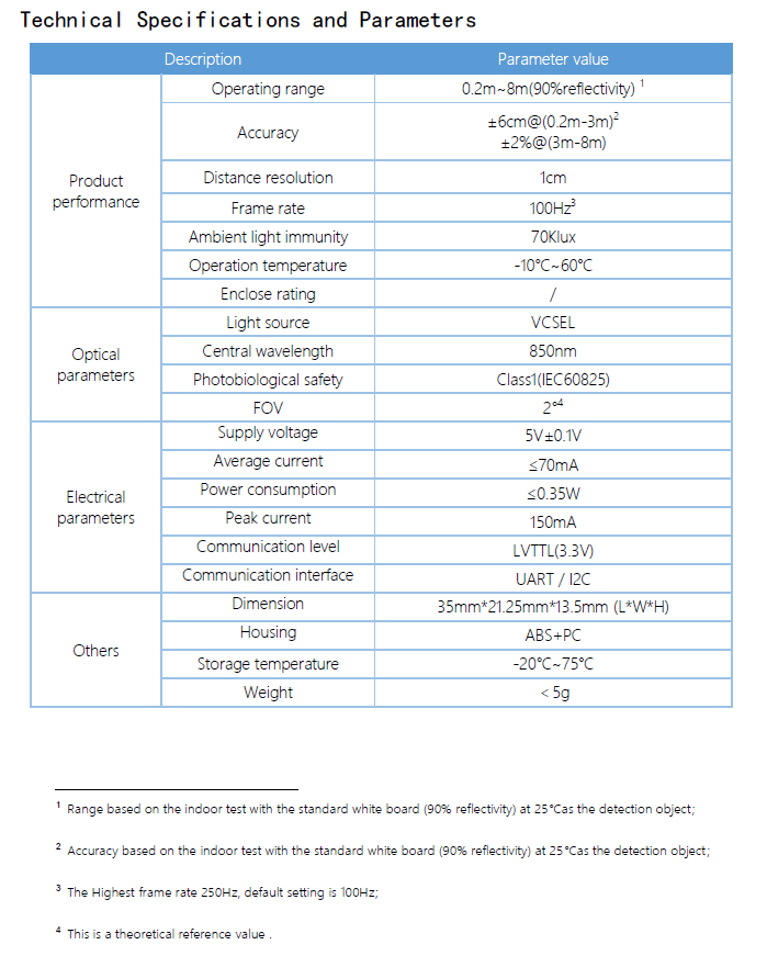 -The product is built with algorithms adapted to various application environments and adopts multiple adjustable configurations and parameters so as to offer excellent distance measurement performances in complex application fields and scenarios.