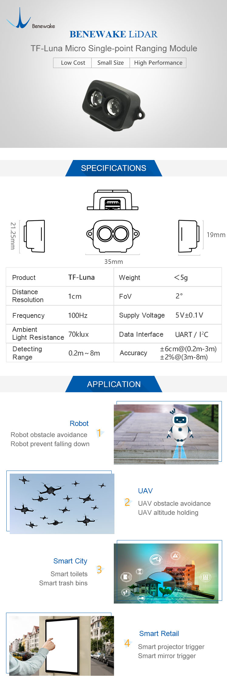 -TF-Luna is a single-point ranging lidar, based on TOF principle.
