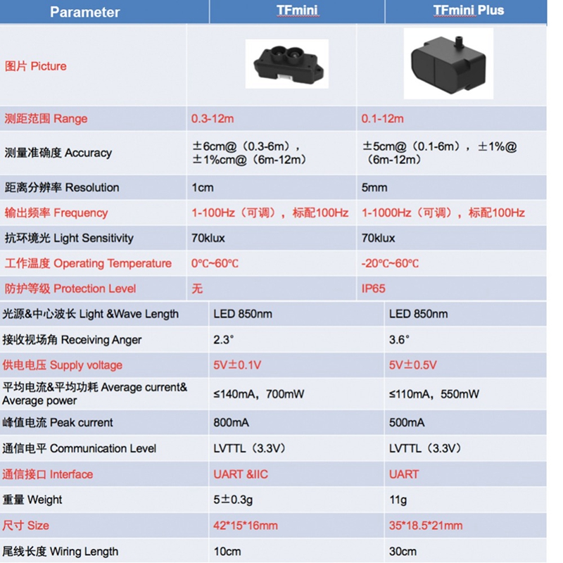 TFmini-Plus IP65 ToF Range Finder Sensor Laser Distance Sensor 0.1-12M for Arduino Pixhawk Drone