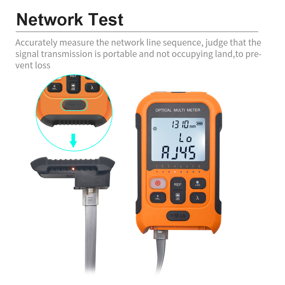 - TM570 series Optic Multimeter, hand-held optical Power meter and red-light integrated testers are mainly used for continuous optical signal power measurement, optical fiber link loss testing and optical fiber line on-off testing. Widely used in optical cable construction and maintenance, optical fiber communication, optical cable sensing, optical CATV and other fields. The fuselage design meets the requirements of human body function and adopts advanced thermoplastic moulding technology, which is beautiful and durable. The red-light integrator of optical power meter can be well protected by using embedded detectors and lasers. The tester has compact shape, automatic shutdown function, backlight display, wavelength memory function, support user calibration, wide test range, support lighting.