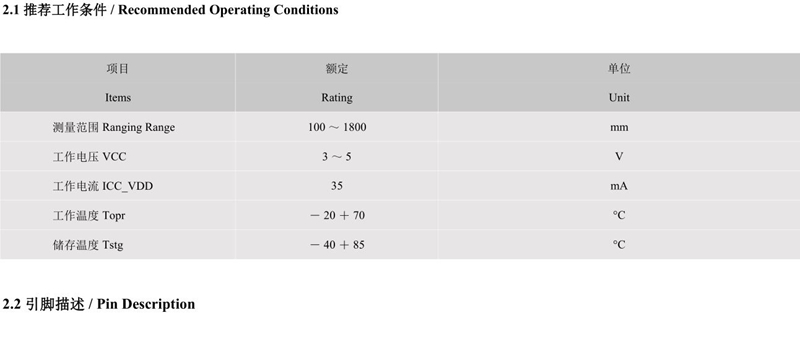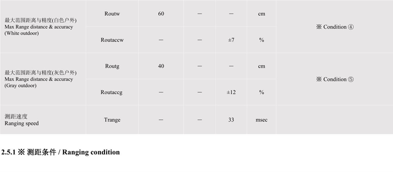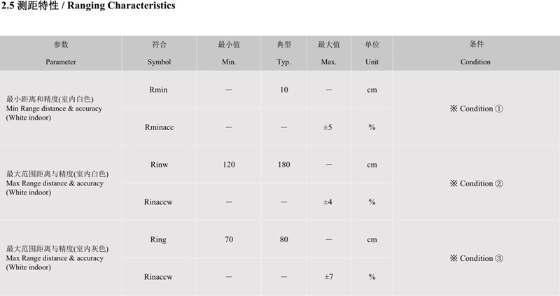 - Long range absolute range measurement up to 1.8m within 5% accuracy at indoor