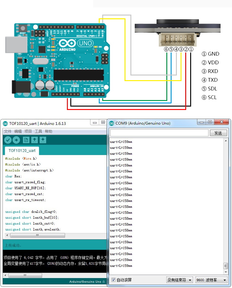 TOF10120 ToF Laser Range Sensor Laser Distance Sensor 5-180cm Serial Port I2C Output 3-5V for Arduino