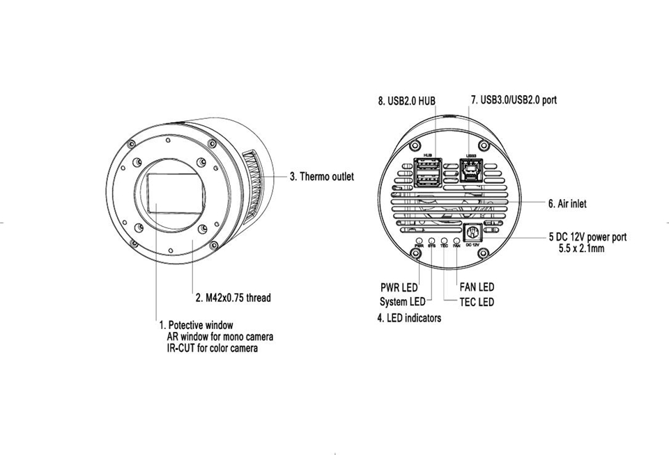 - Effective cooling temp: -35℃ below ambient under short exposure/ -45℃ under long exposure (> 1s)