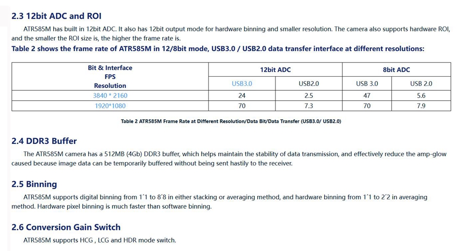 - Support high frame rate mode (24 FPS at all pixel readout 12 bit)