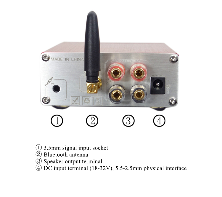 - Input mode: 3.5MM stereo wired socket interface + Bluetooth