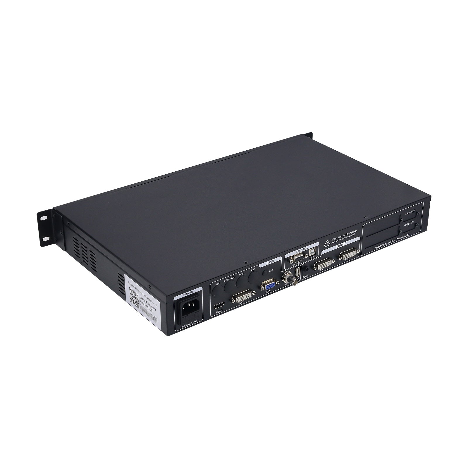 - Video Output Interface: It has 2 DVI video outputs. The 2 videos programmed output to LED sending cards or displays.
