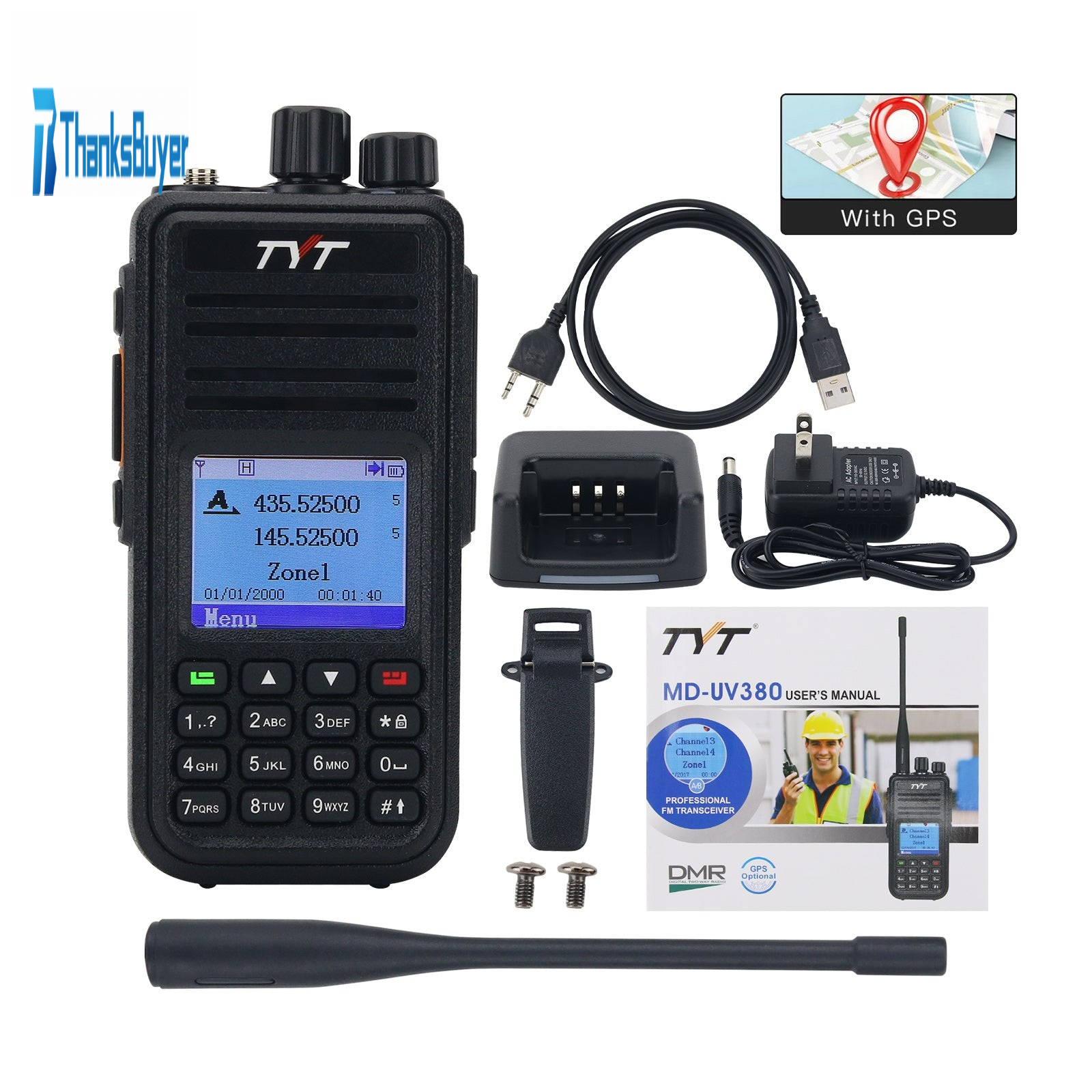 TYT MD-UV380 5W 5KM DMR Transceiver Walkie Talkie Handheld Transceiver w/ Programming Cable GPS