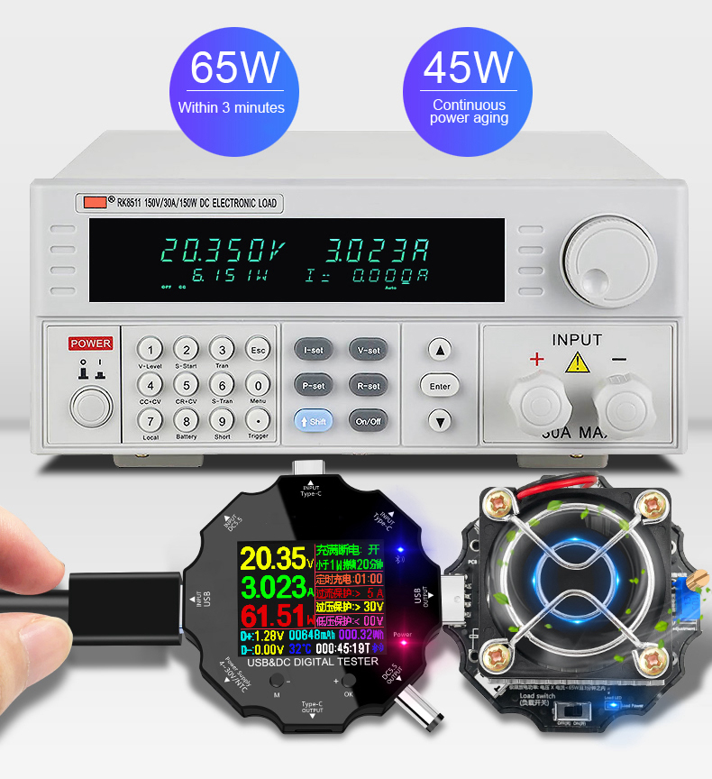 - Rated aging power: 45W (sustainable); ultimate aging power: 65W (within 3 minutes)