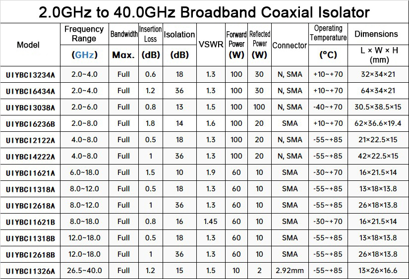 UIYBCI3234A 2.0-4.0GHz Broadband Coaxial Isolator RF Broadband Isolator (with SMA-F Connector)