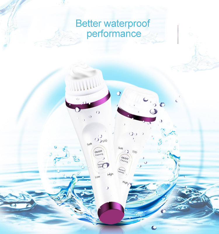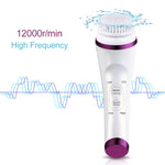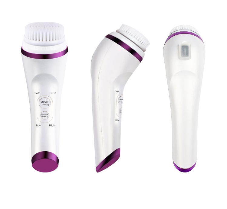 Ultrasonic Electrical Facial Cleansing Brush Rechargeable Waterproof Facial Beauty Massager Purple