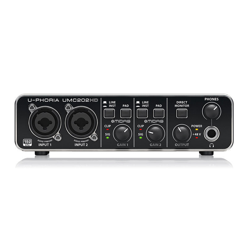 The U-PHORIA UMC202HD is a powerful 2 input, 2 output USB recording interface featuring genuine mic preamps (for Midas) with exceptional 24-Bit/192 kHz high-resolution converters, designed to help your recordings and mixes sound their absolute best. Visit your local dealer or online reseller and find out what a great addition to any studio or mobile recording rig it can be.