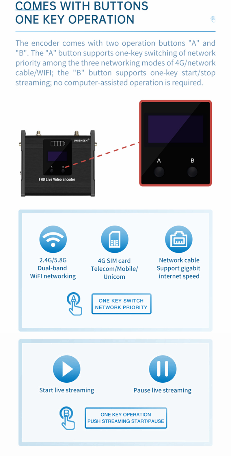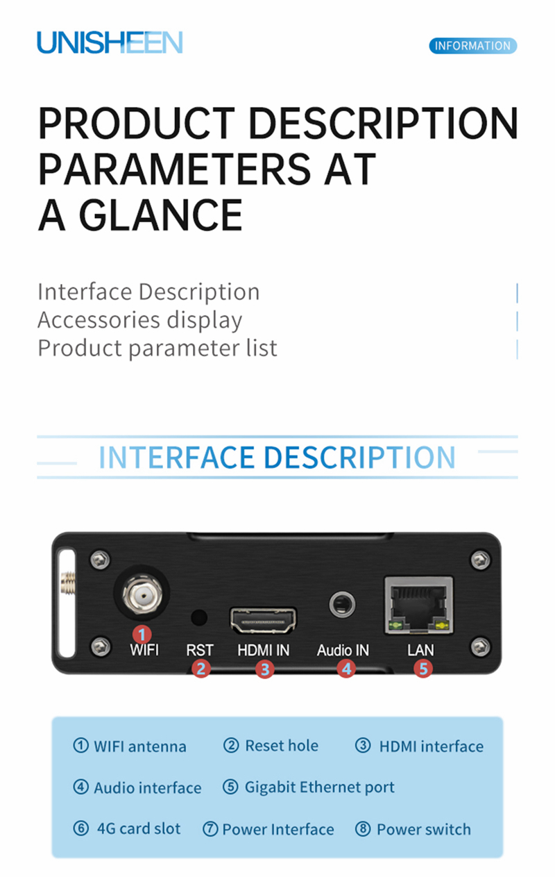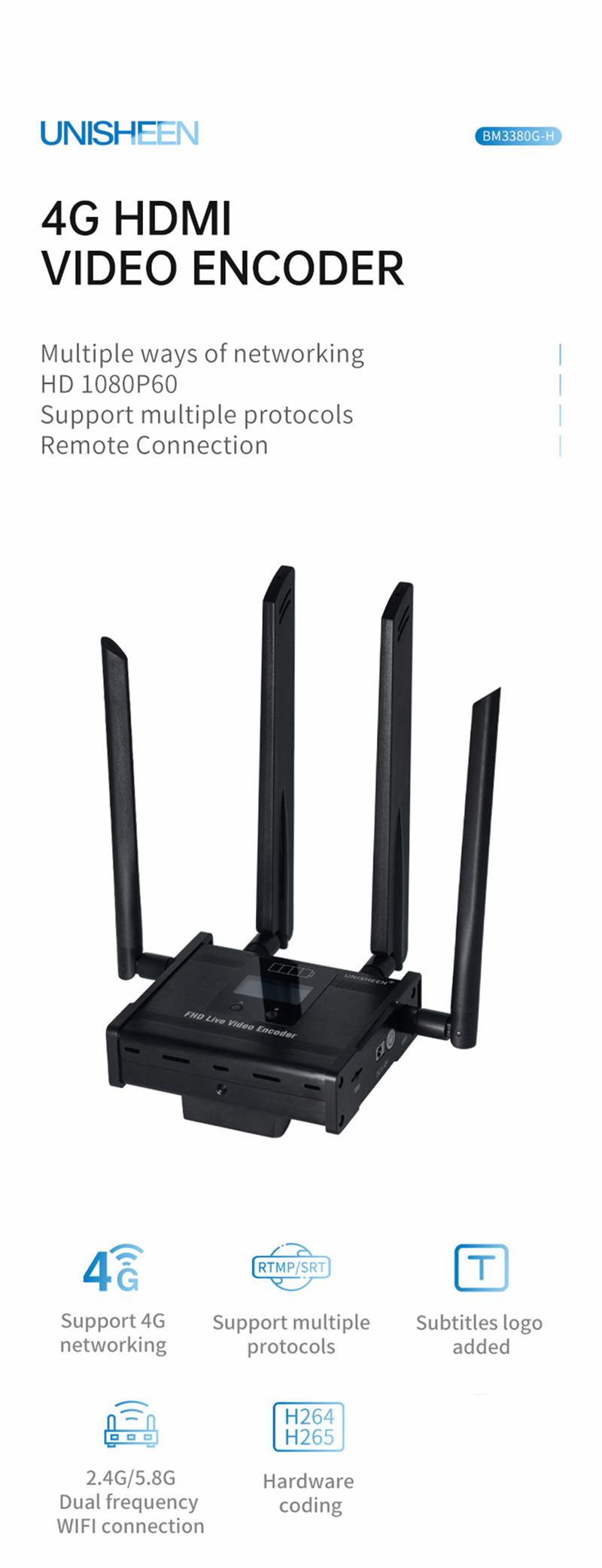Unisheen BM3380G-H 4G LTE FHD Live Video Encoder HDMI Encoder For Wifi Video Camera Livestreaming