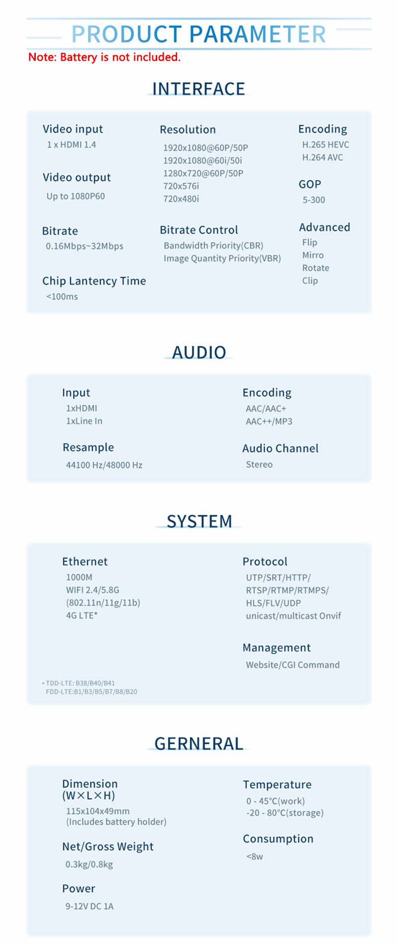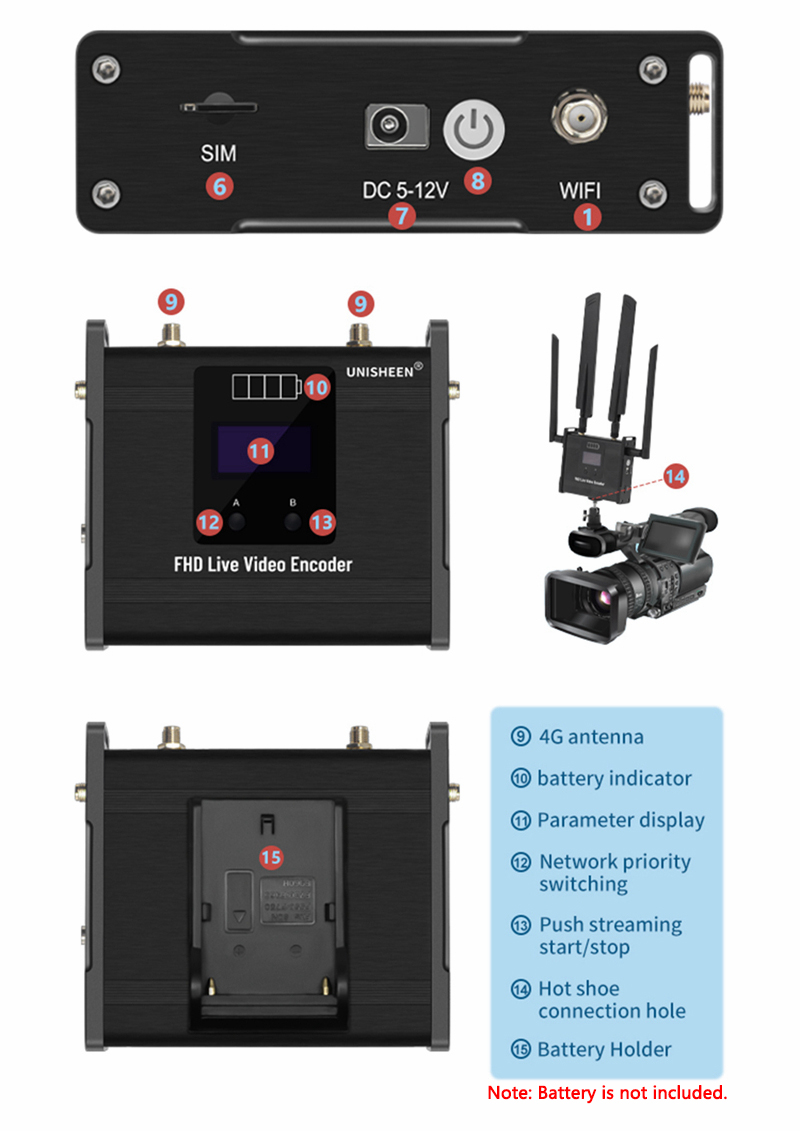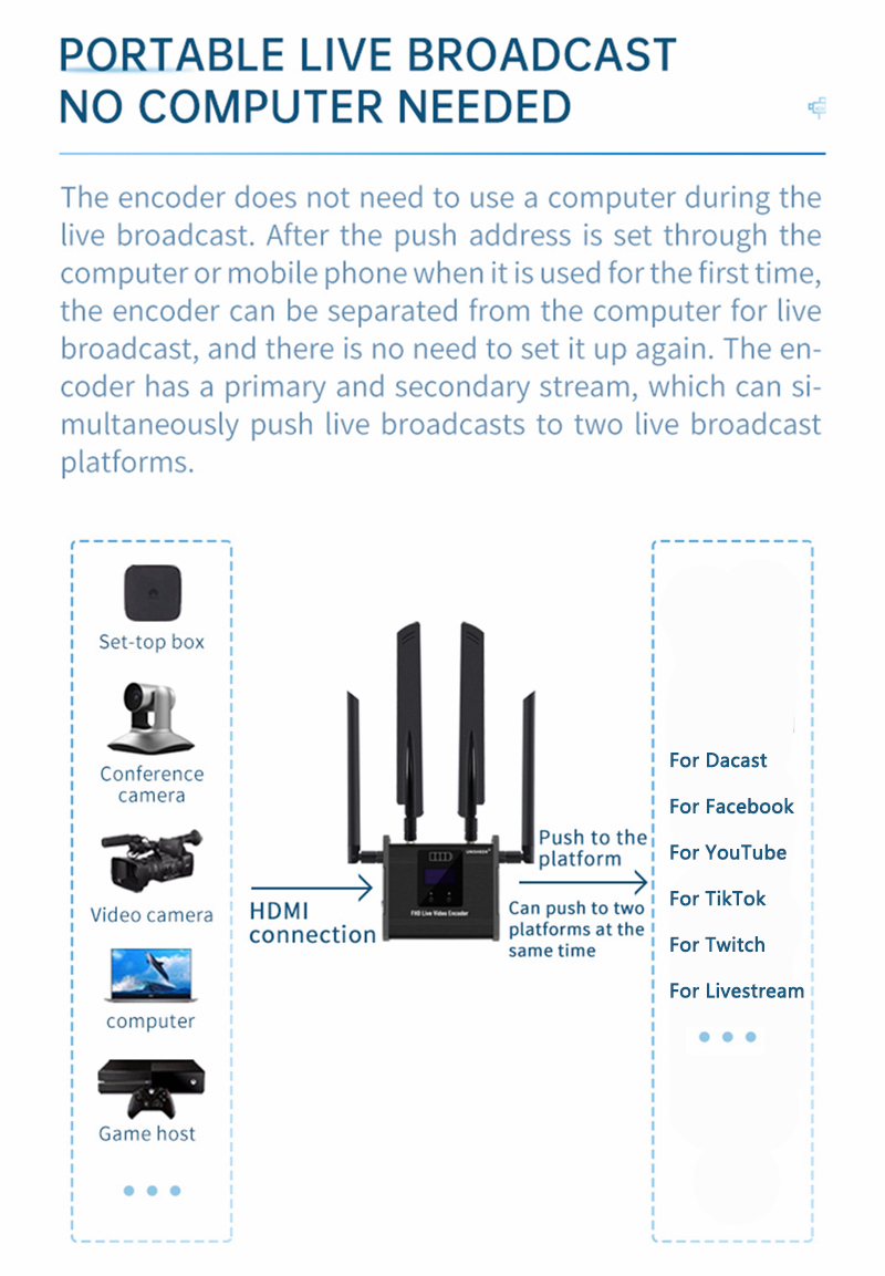 Unisheen BM3380G-H 4G LTE FHD Live Video Encoder HDMI Encoder For Wifi Video Camera Livestreaming