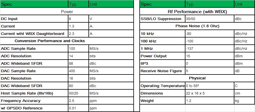 - Optional internal GPS servo clock: USRP-LW N210 GPSDO